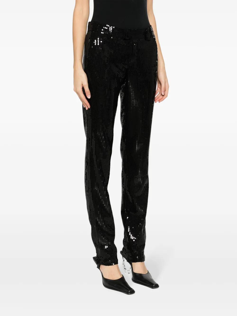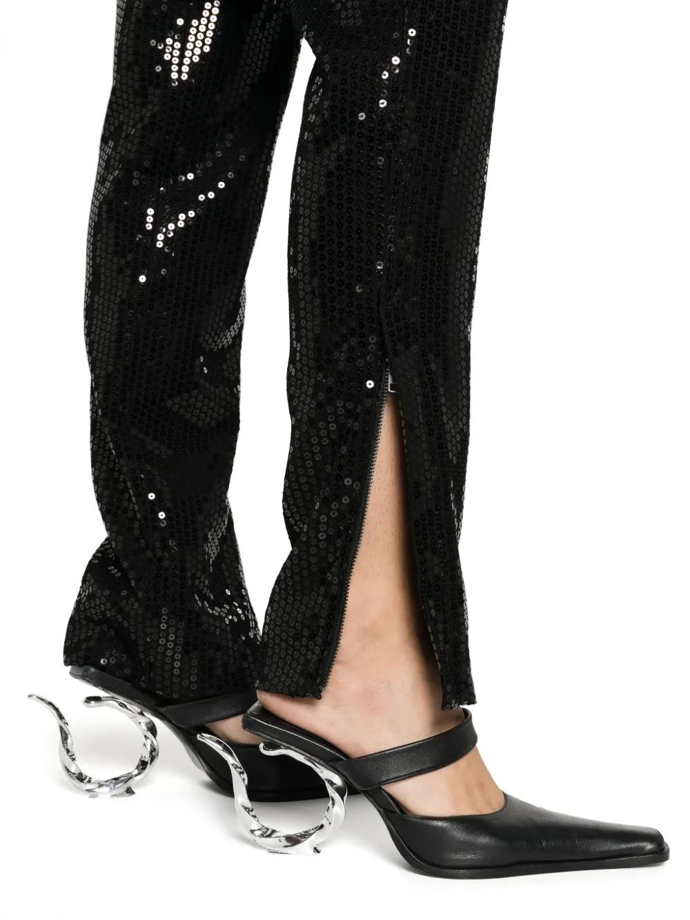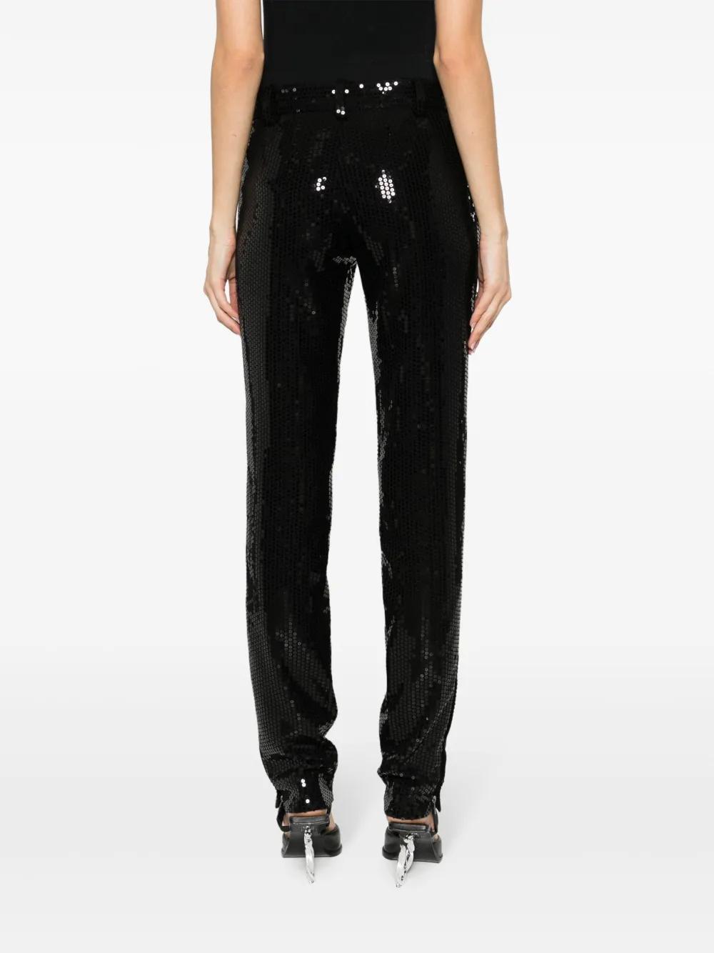 black stretch-design sequin design belt loops low-rise tapered leg concealed front fastening two side inset pockets ankle zips