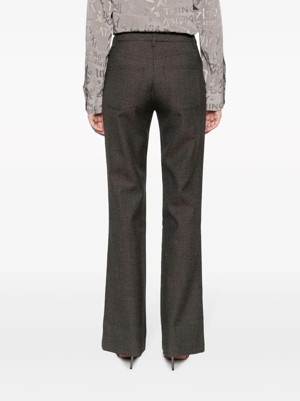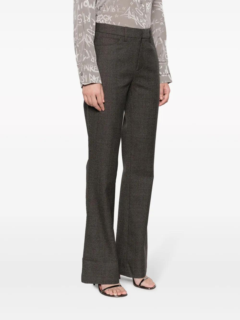 anthracite grey wool tailored cut mid-rise flared design belt loops concealed front fastening two diagonal pockets to the sides two rear patch pockets