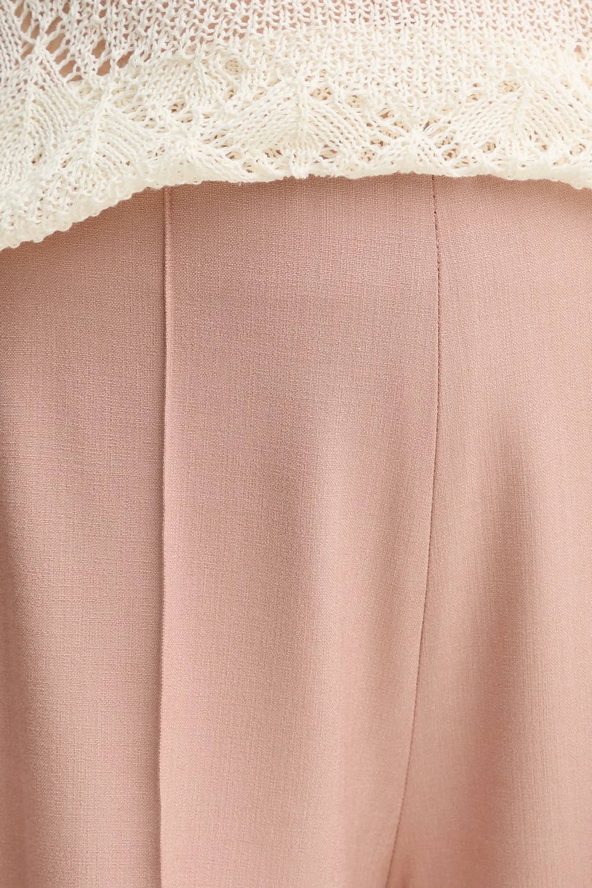 - Produkt częściowo wykonany z LENZING™ ECOVERO™ - materiału przyjaznego środowisku. Produkcja LENZING™ ECOVERO™ z ekologicznej celulozy i pulpy drzewnej wykorzystuje o 50% mniej wody w porównaniu do popularnej wiskozy. - Prosty, nie blokujący ruchów fason. - Model z podwyższoną talią i krytym zapięciem na suwak. - Prosta nogawka na całej długości. - Model z ozdobnymi przeszyciami. - Imitacja kieszeni na pośladku. - Cienka, elastyczna tkanina. - Szerokość w pasie: 36 cm. - Szerokość w biodrach: 54 cm. - Wysokość stanu: 33 cm. - Szerokość nogawki: 32 cm. - Długość zewnętrzna nogawki: 65 cm. - Wymiary podane dla rozmiaru: 36.