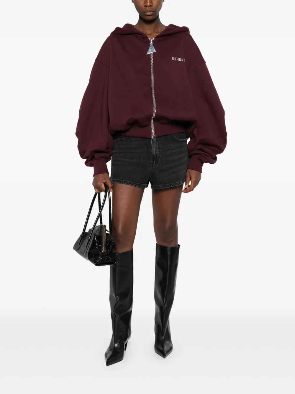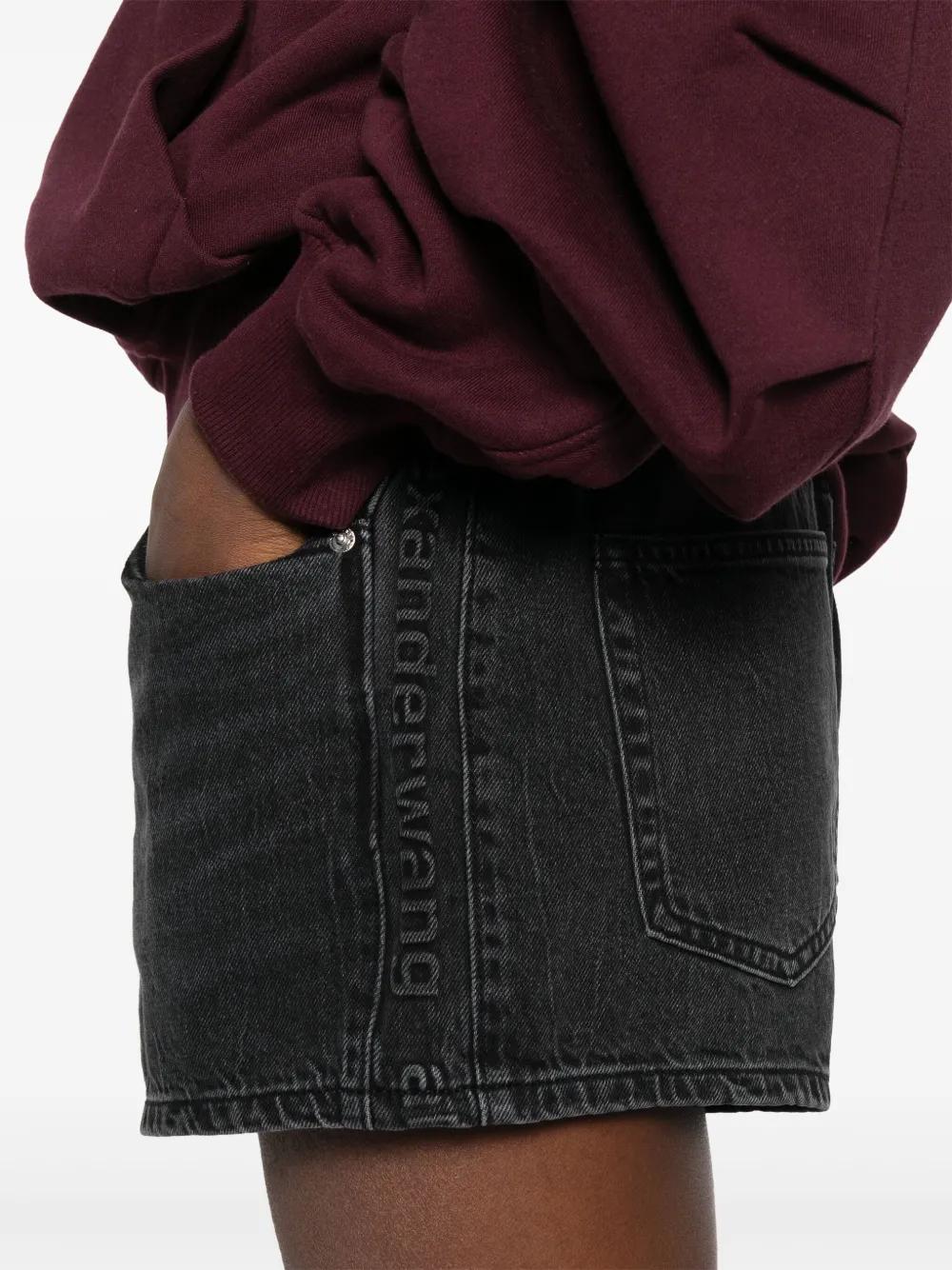 grey button and zip front fastening classic five pockets elasticated waistband belt loops rear logo patch