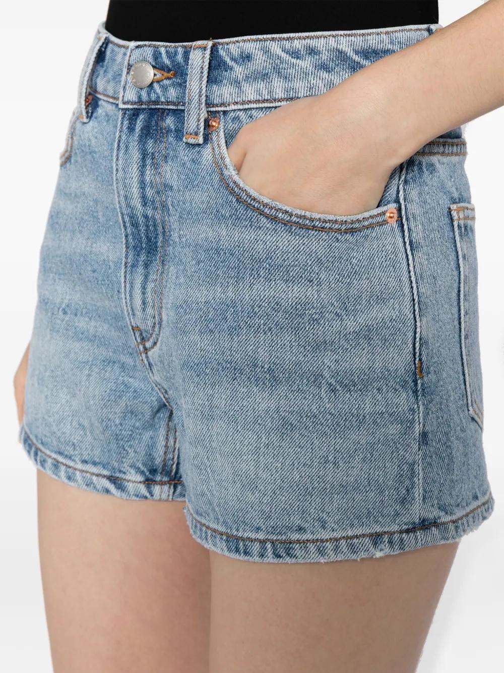 blue cotton denim mid wash faded effect whiskering effect logo patch to the rear high-rise belt loops slim cut concealed fly and button fastening classic five pockets straight hem