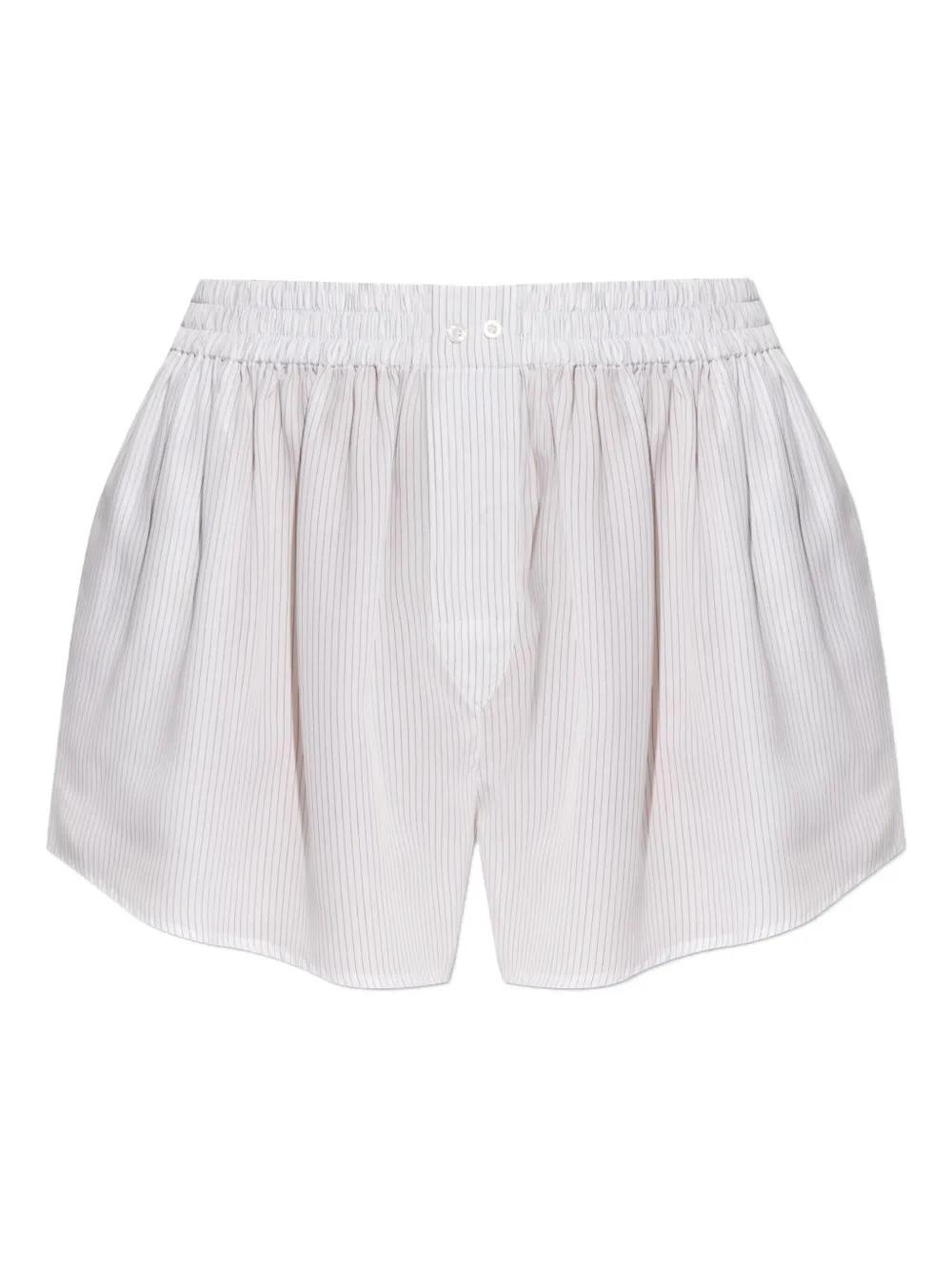 white pinstripe pattern elasticated waistband wide leg side inset pockets