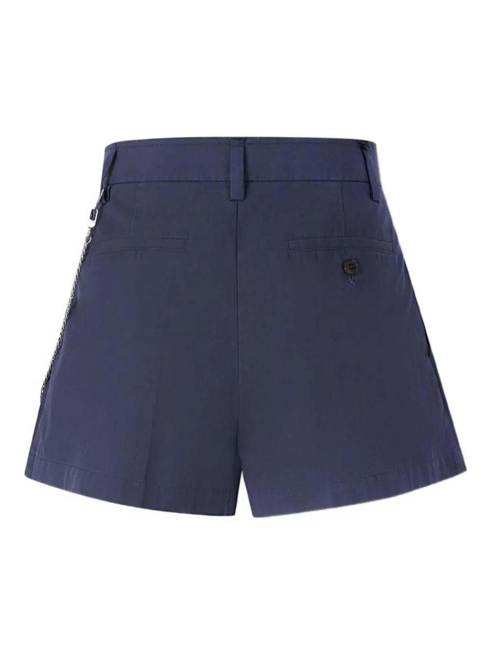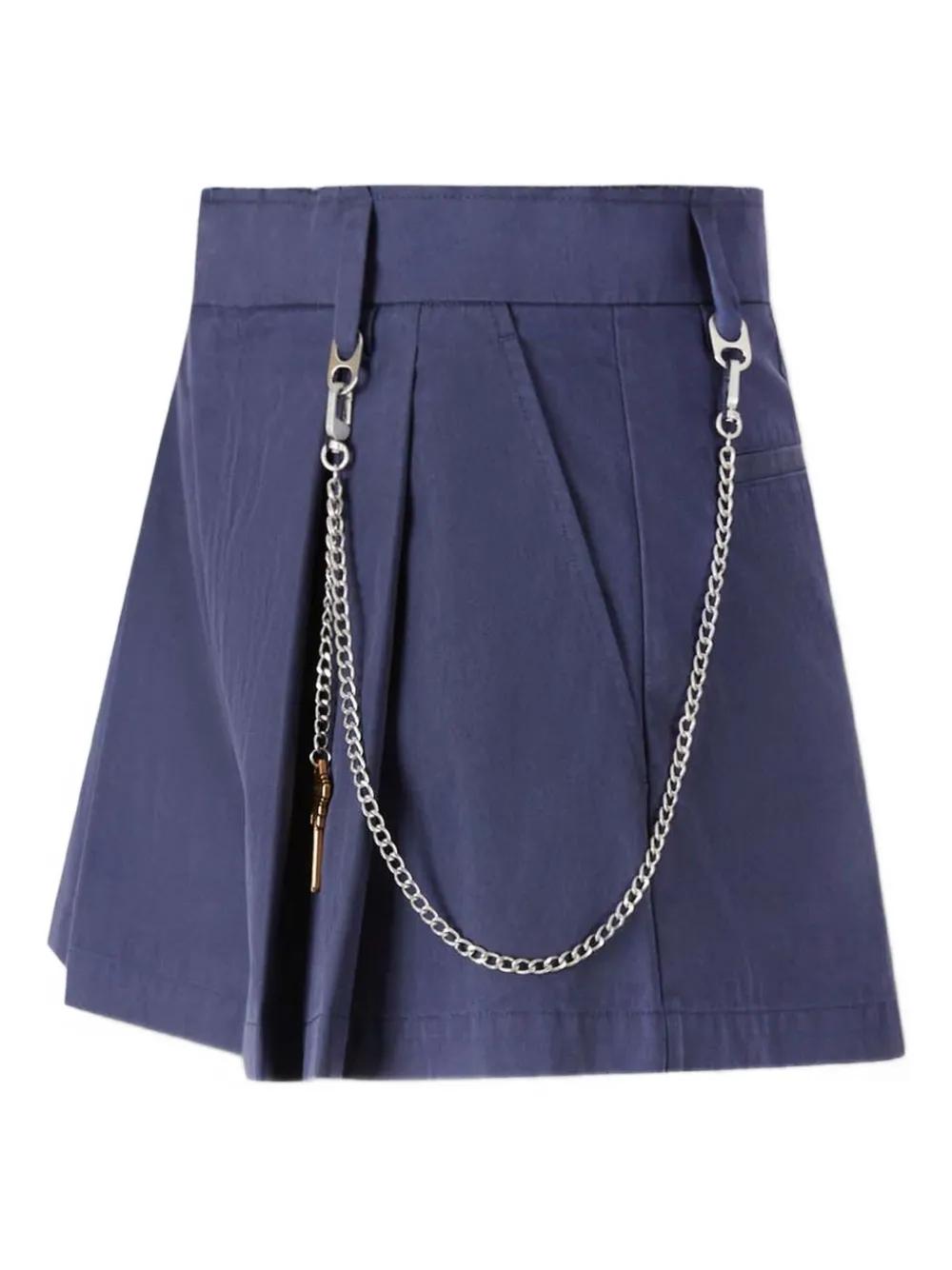 blue pleated design key chain detail chain embellishment high waist straight hem