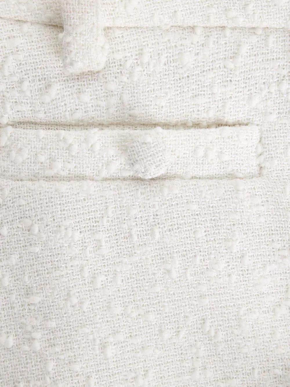 white virgin wool blend/cotton blend tweed concealed side hook and zip fastening two front welt pockets belt loops straight hem thigh-length tailored design
