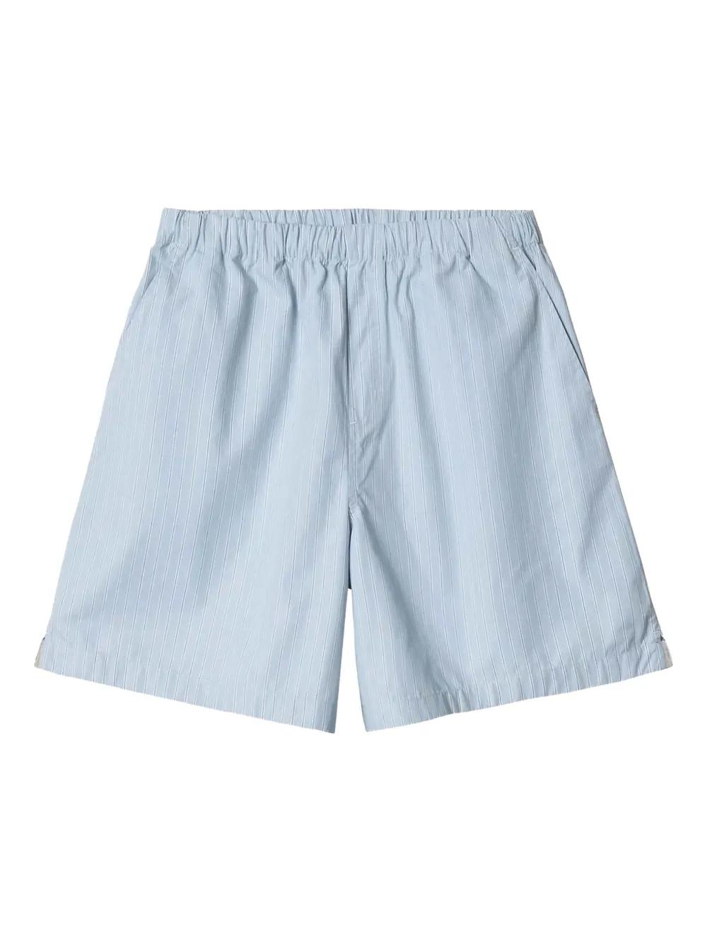 light blue elasticated waistband two side slash pockets two rear patch pockets