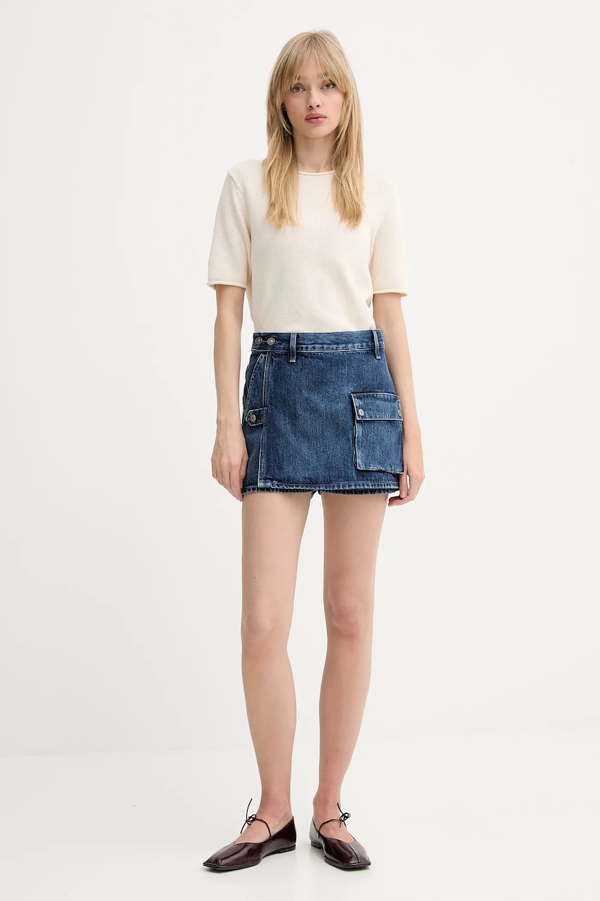 G-Star spódnicospodnie jeansowe damskie kolor granatowy gładkie high waist D26173-D788