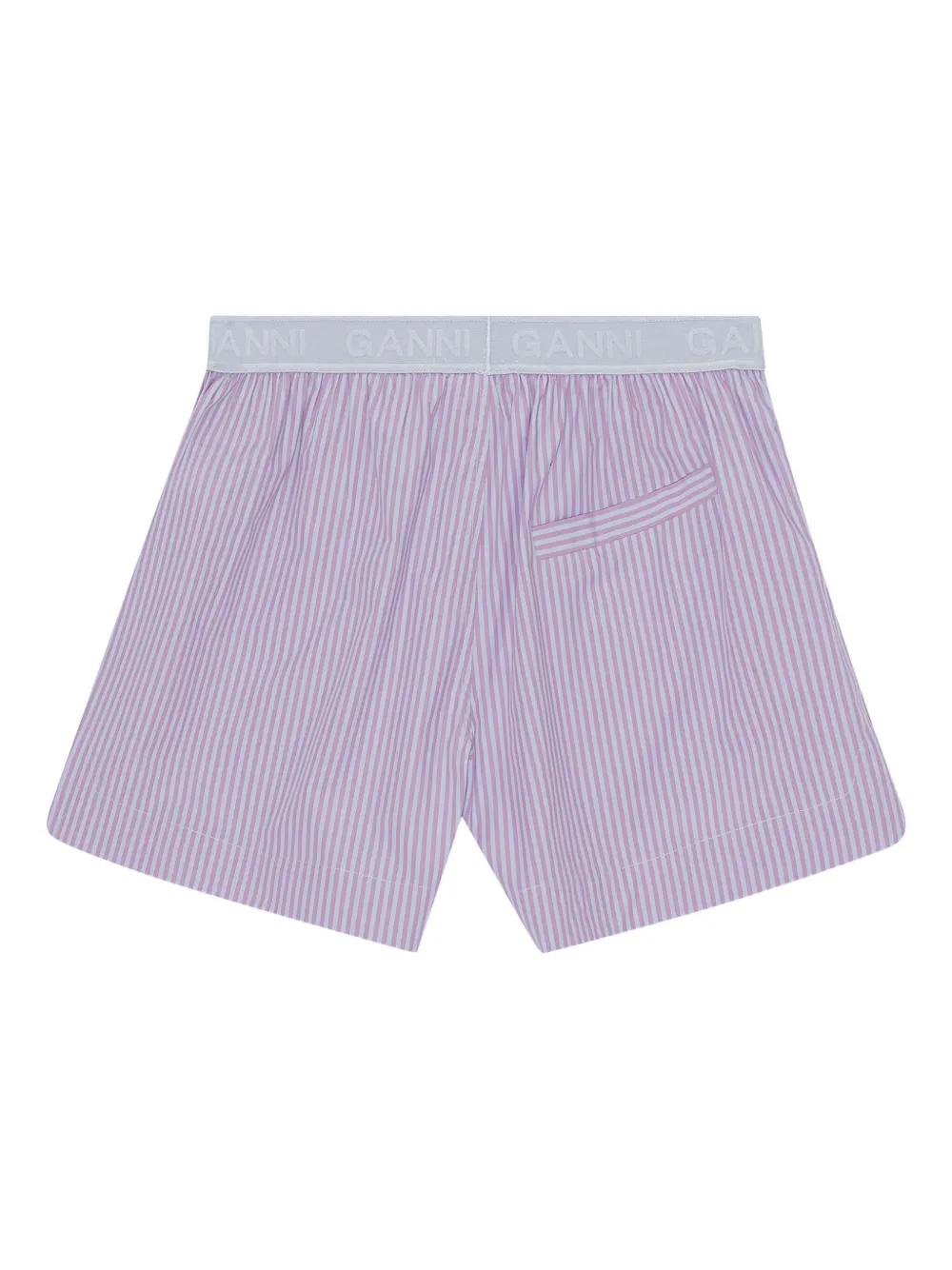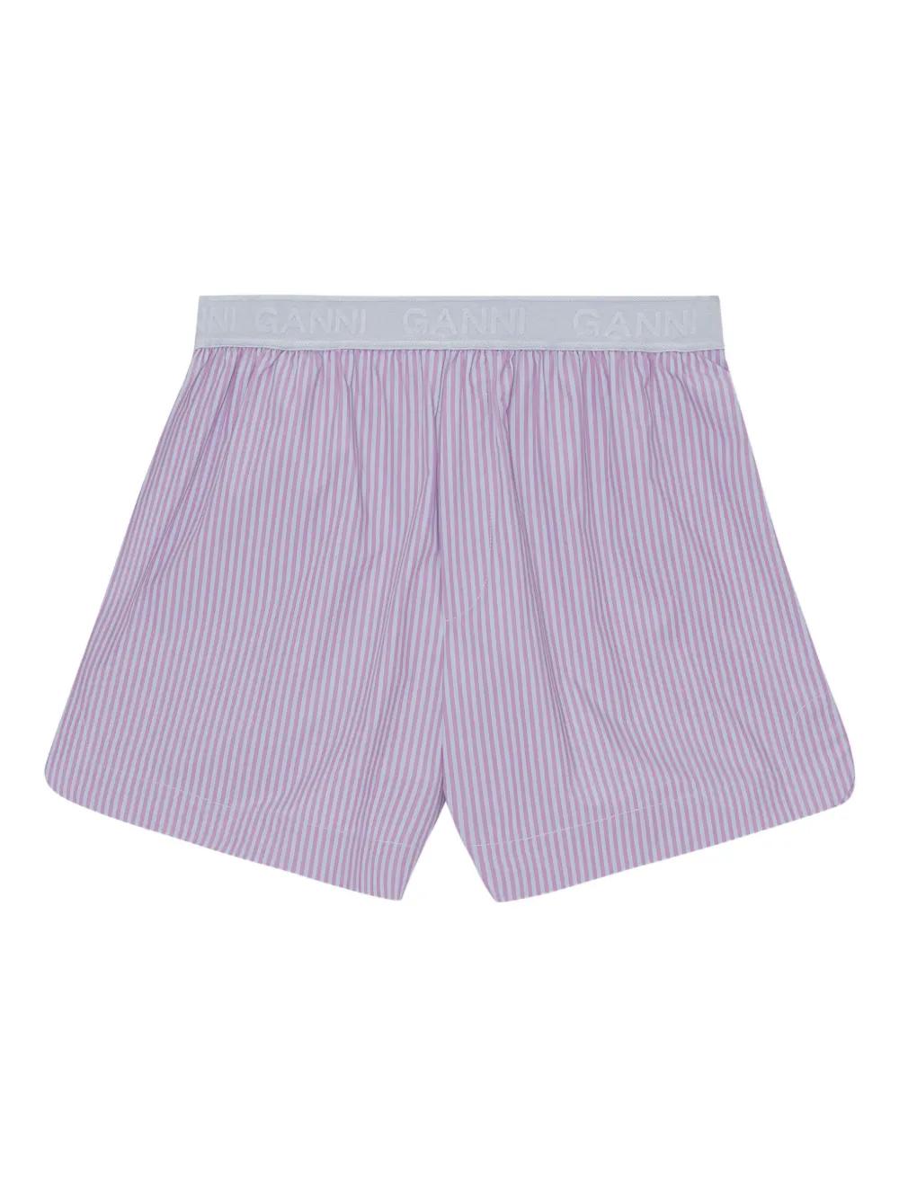 lilac purple striped pattern elasticated waistband logo waistband thigh length