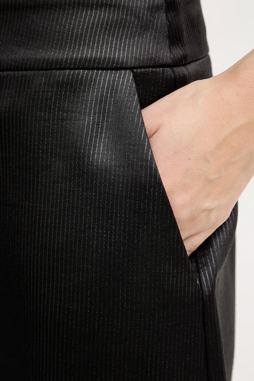 - Prosty, nie blokujący ruchów fason. - Zapięcie na kryty suwak i haftkę. - Dwie wsuwane kieszenie boczne. - Model wykonany z materiału o satynowym splocie. - Cienka, nieelastyczna tkanina. - Szerokość w pasie: 40 cm. - Szerokość w biodrach: 54 cm. - Wysokość stanu: 31 cm. - Szerokość nogawki na dole: 31 cm. - Szerokość nogawki: 33 cm. - Długość: 34 cm. - Wymiary podane dla rozmiaru: S.