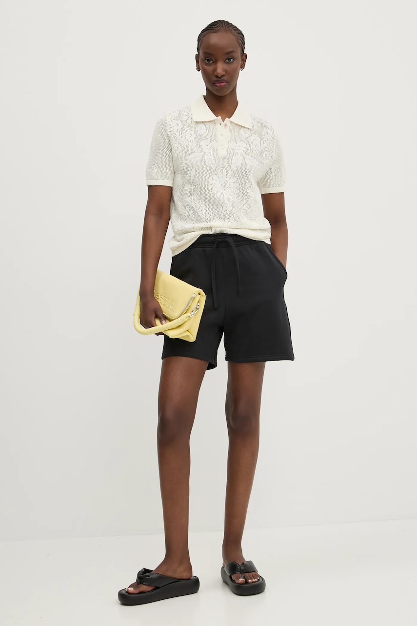 Herschel szorty bawełniane damskie kolor czarny gładkie high waist 50307-00001