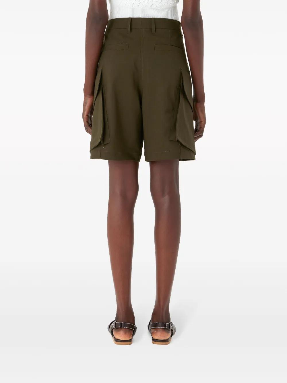 olive green virgin wool high-waisted belt loops concealed fly and button fastening two side inset pockets two side cargo pockets two rear jetted pockets straight leg knee-length