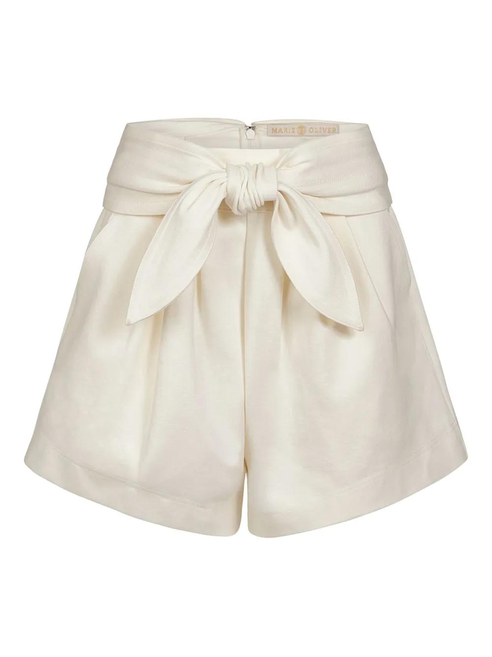 white concealed rear hook and zip fastening tied waist two side slit pockets pleat detailing