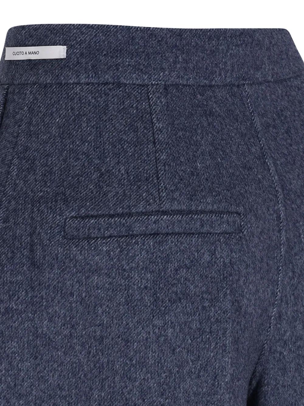 neutral elasticated waistband belt button detail rear pocket herringbone weave