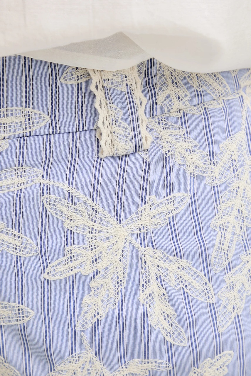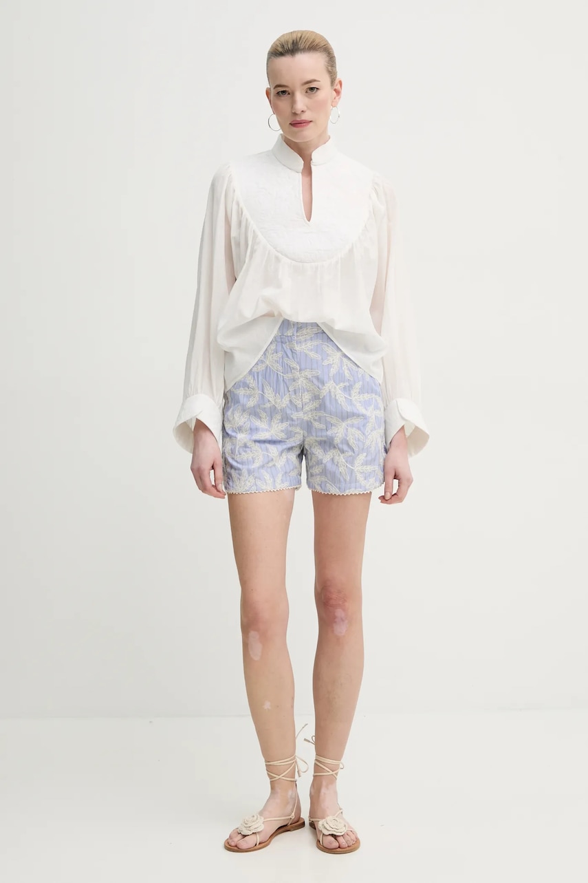 MUNTHE szorty bawełniane FIDELMA damskie kolor niebieski wzorzyste high waist 251142925136