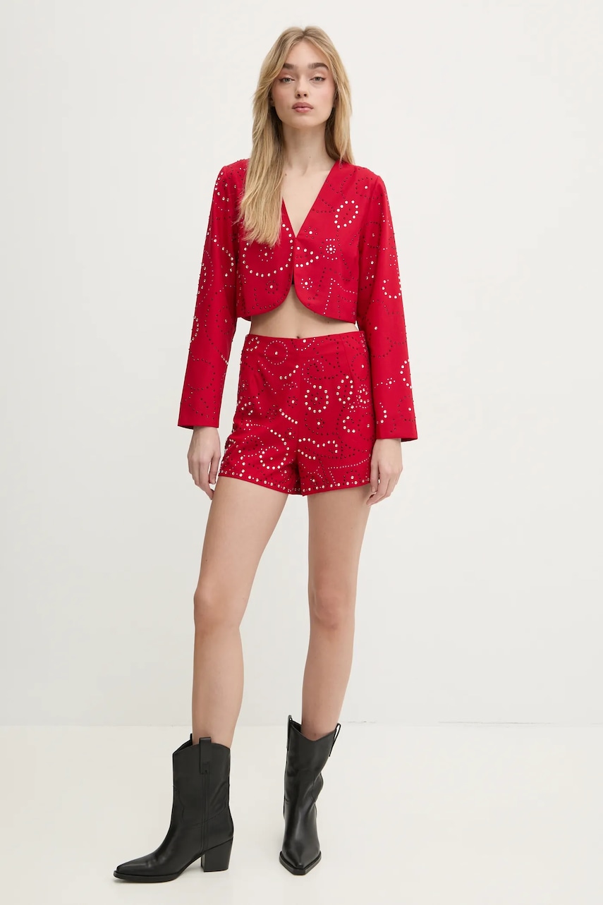 Never Fully Dressed szorty Gem damskie kolor czerwony z aplikacją high waist NFDTR423