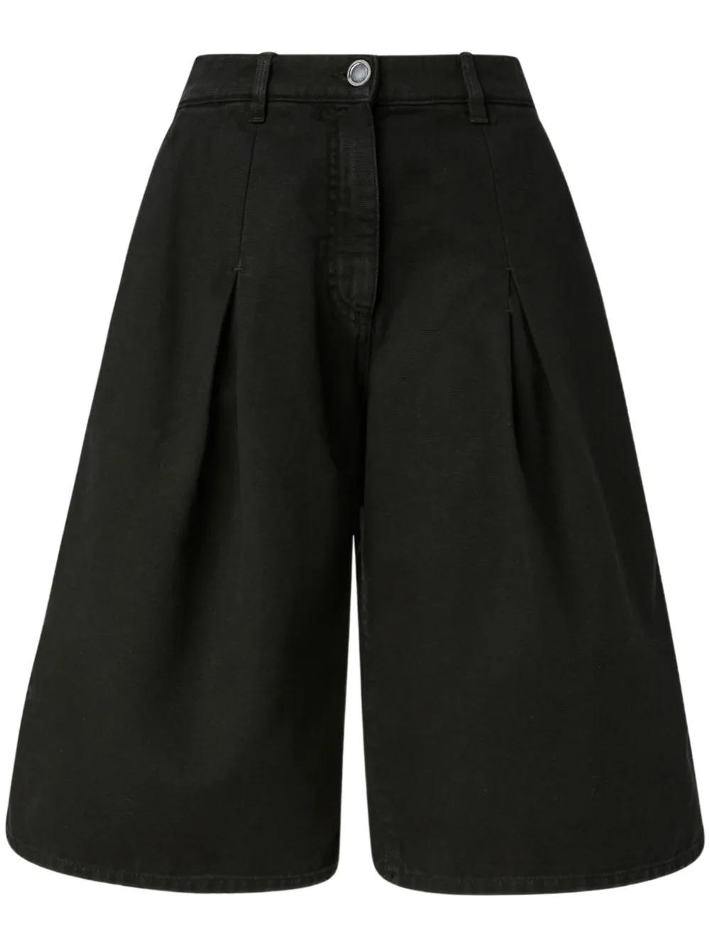 black concealed fly and button fastening two side slit pockets two rear zip-fastening pockets belt loops