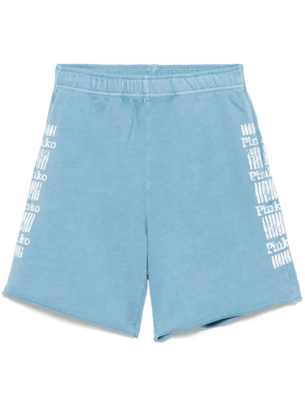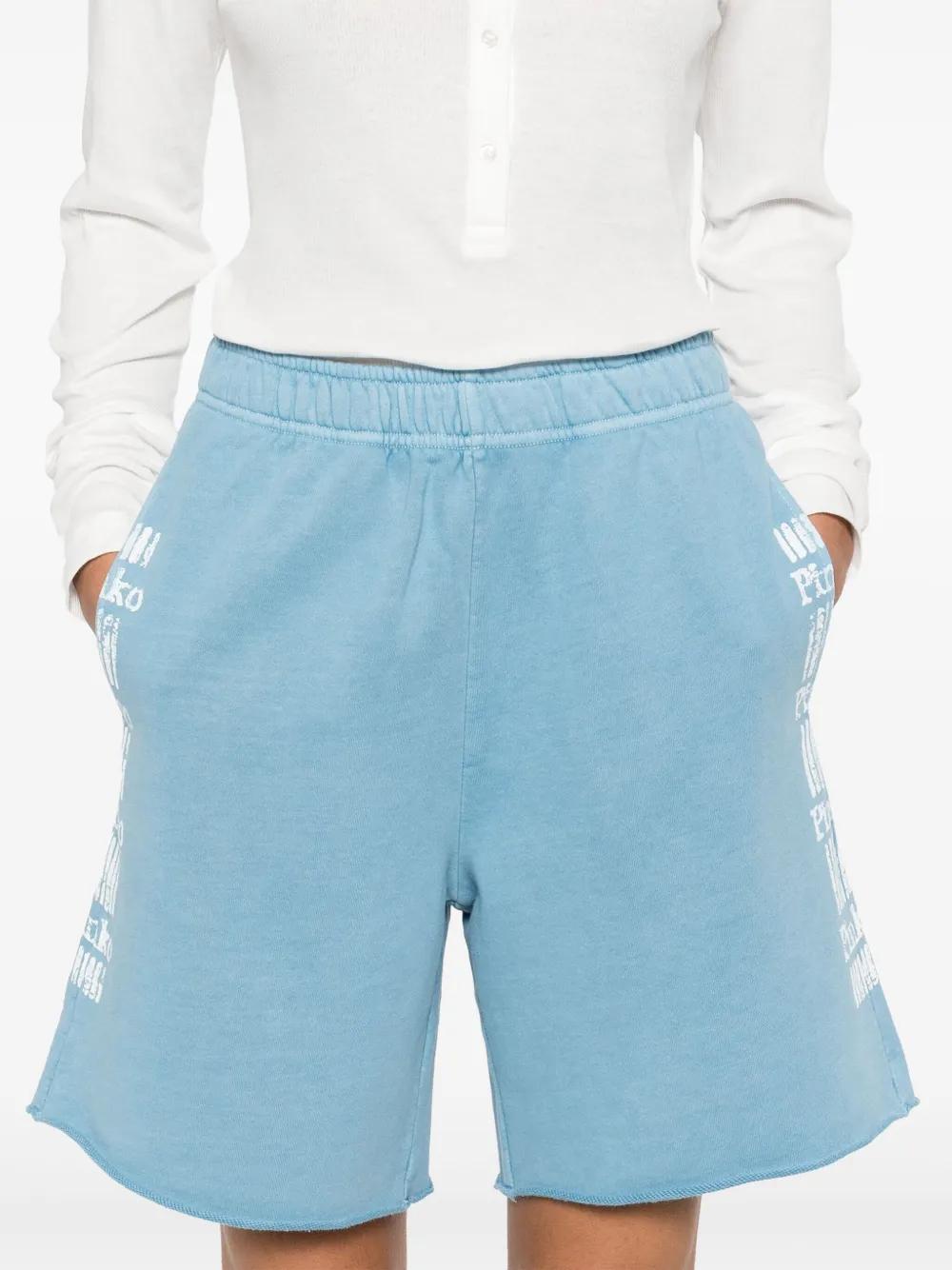 pacific blue elasticated waistband two side inset pockets raw-cut hem logo print at the leg