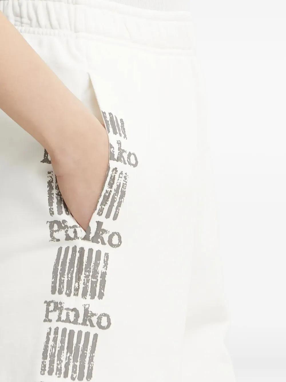 white elasticated waistband side logo print drawstring fastening two side pockets