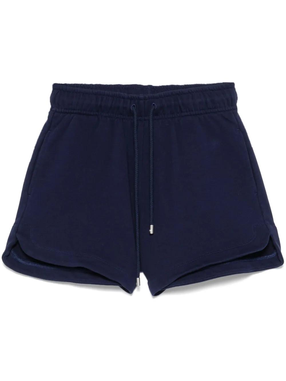 prussian blue elasticated drawstring waistband slip pockets to the sides side slits logo print to the rear