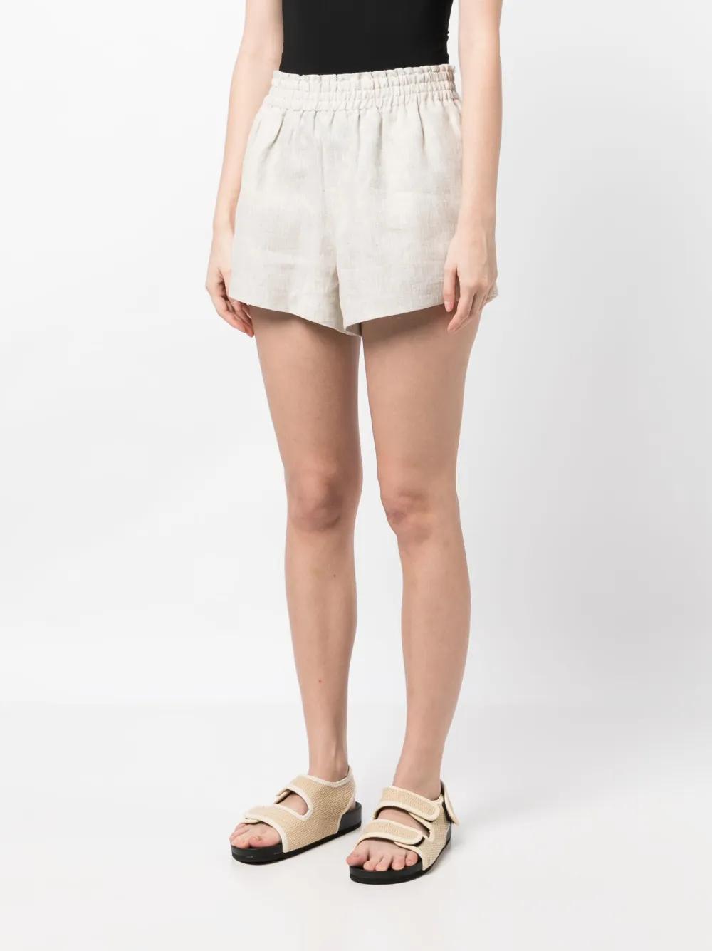 light beige linen/flax slub texture ruched detailing thigh-length smocked waist two side slash pockets