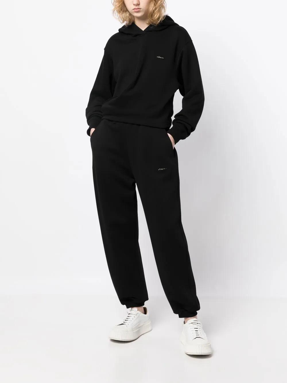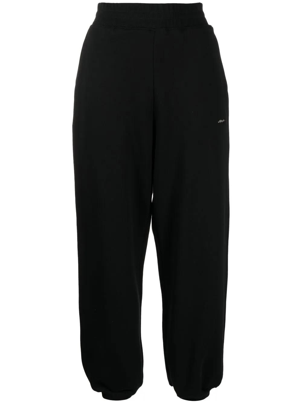 black/white cotton mid-rise elasticated waistband two side slit pockets ribbed cuffs