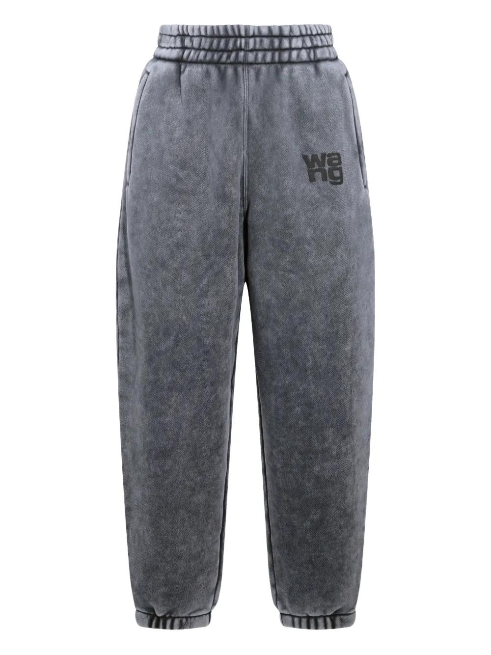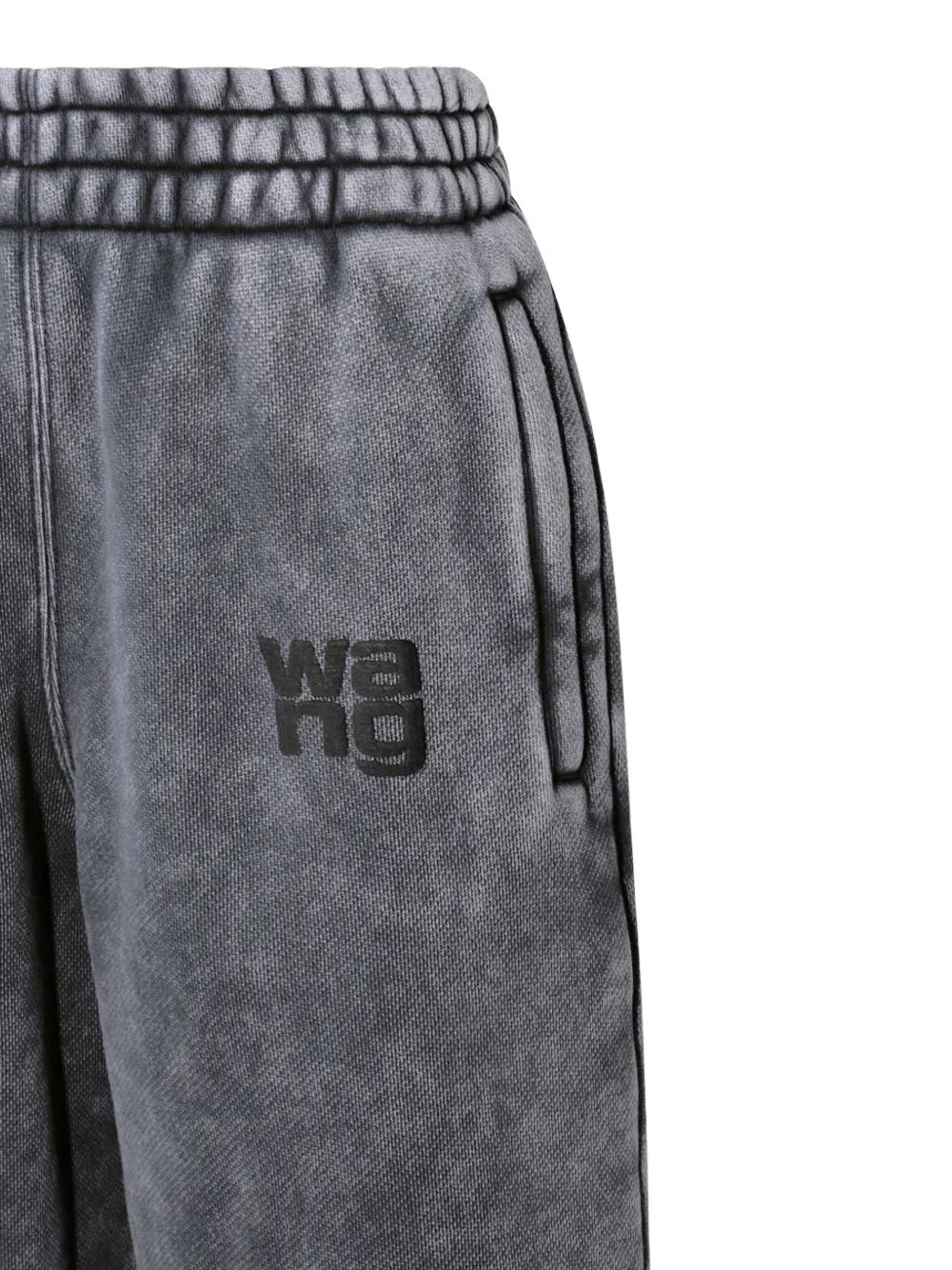 grey washed effect elasticated waistband side pockets back pocket embroidered logo
