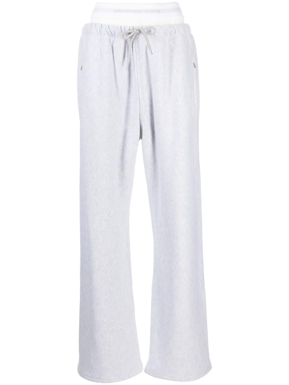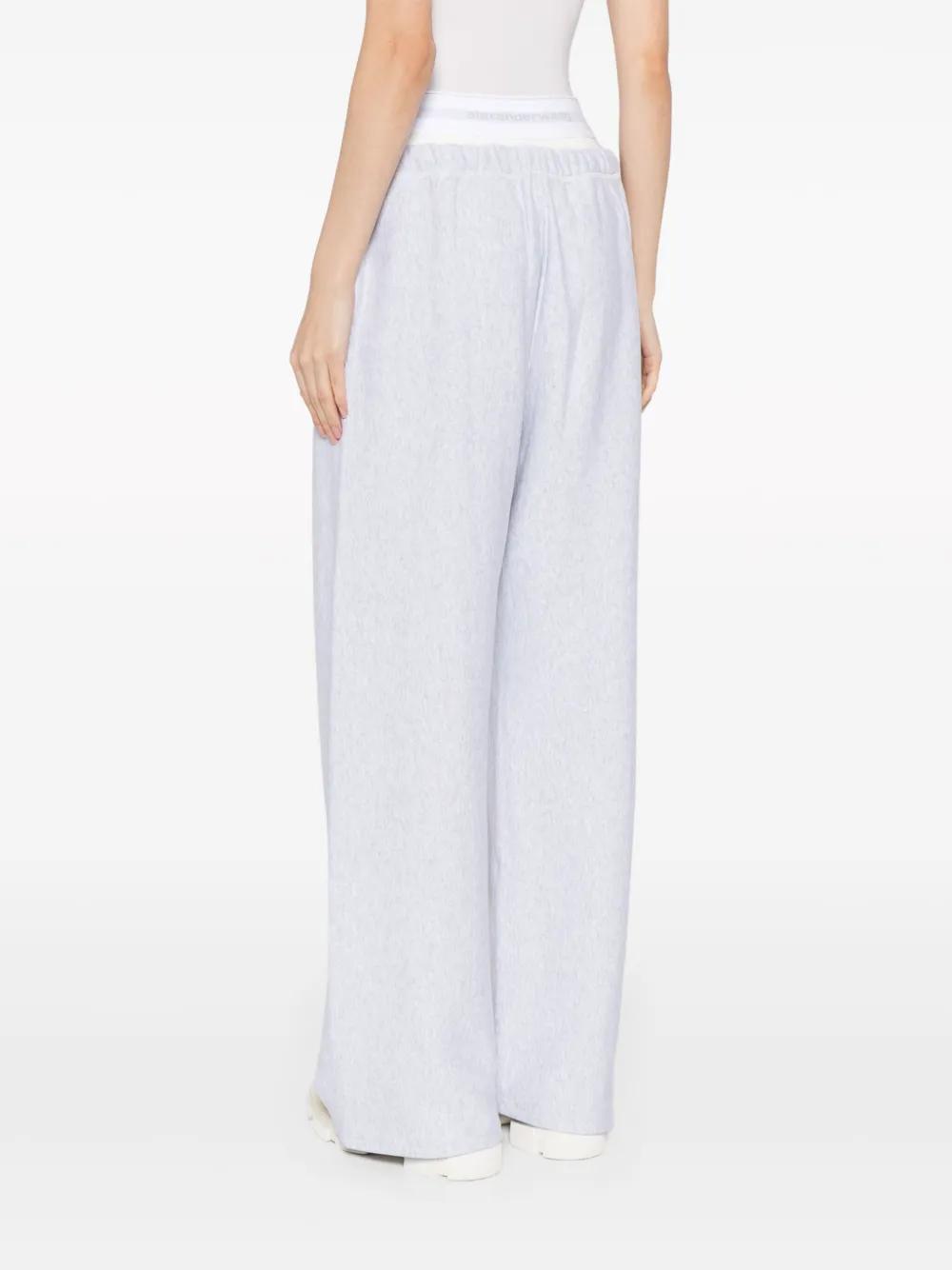 heather grey/white stretch-cotton mid-rise layered design logo waistband elasticated waistband two side inset pockets wide leg