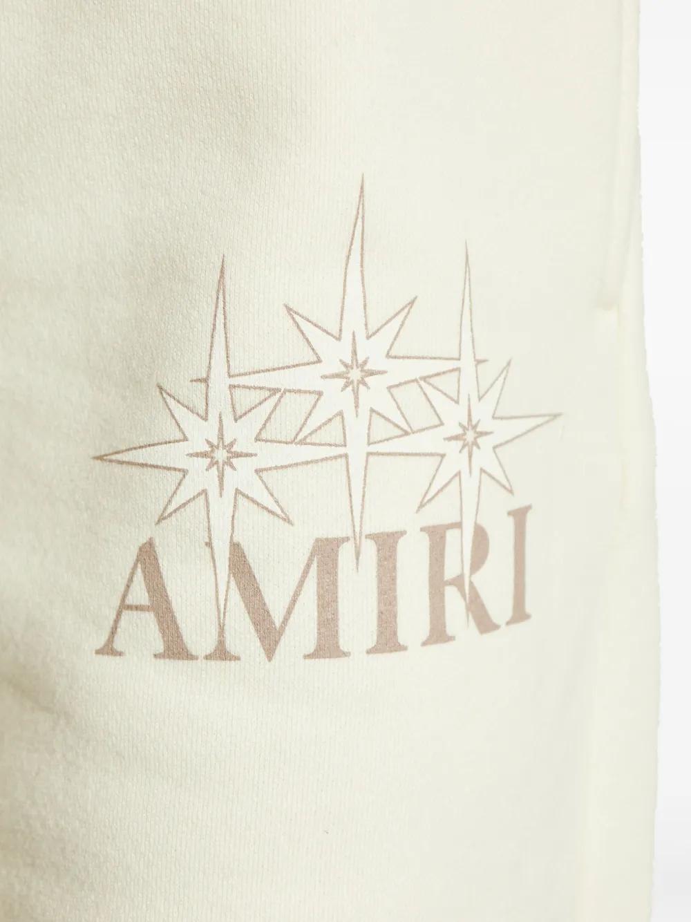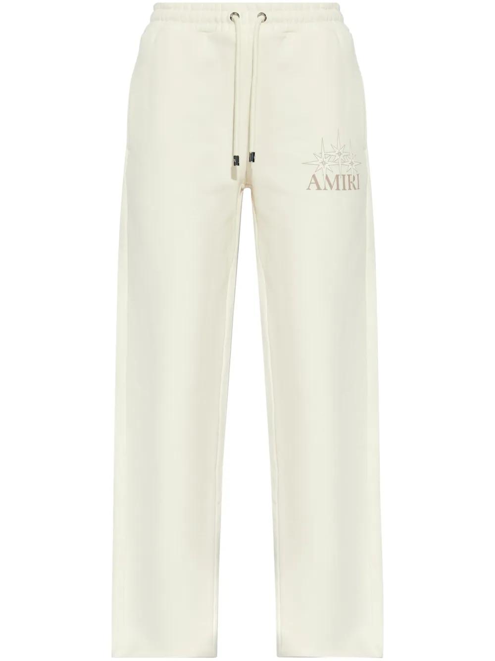 light beige elasticated drawstring waistband two side inset pockets logo print at the leg straight leg