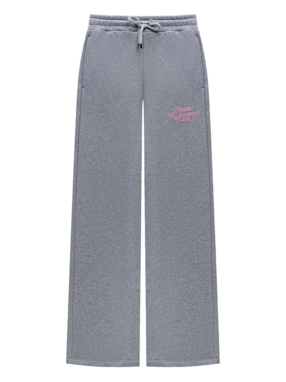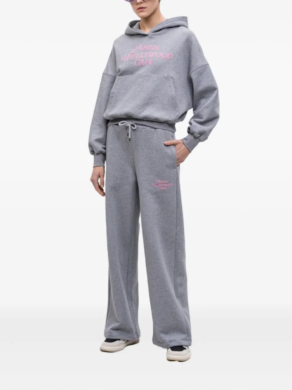 grey drawstring waistband embroidered Amiri Hollywood Cafe logo side pockets cotton