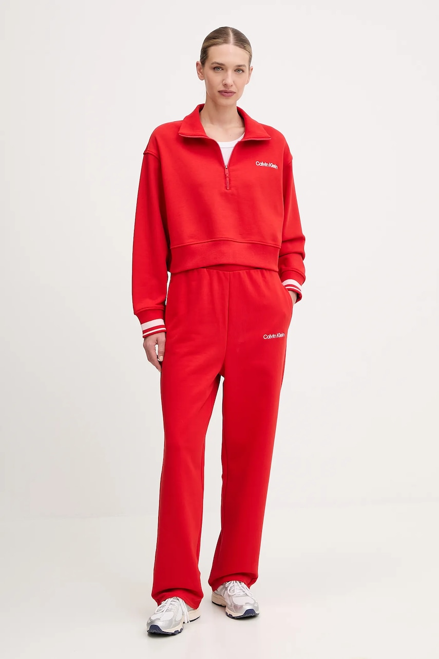 Calvin Klein Performance spodnie dresowe damskie kolor czerwony gładkie LVGWF5P627