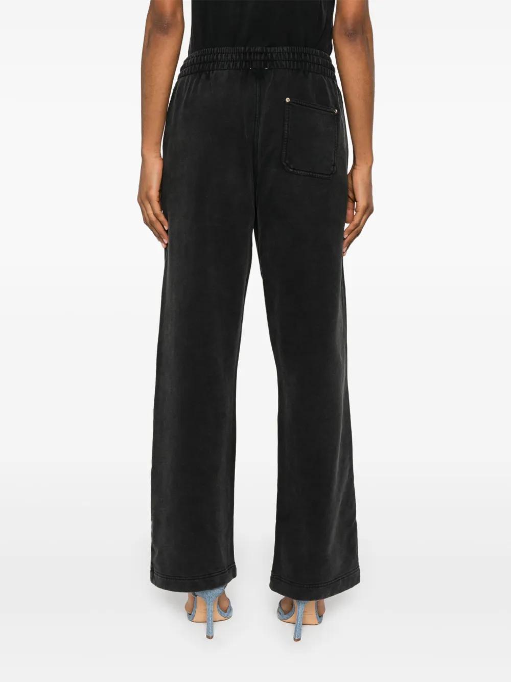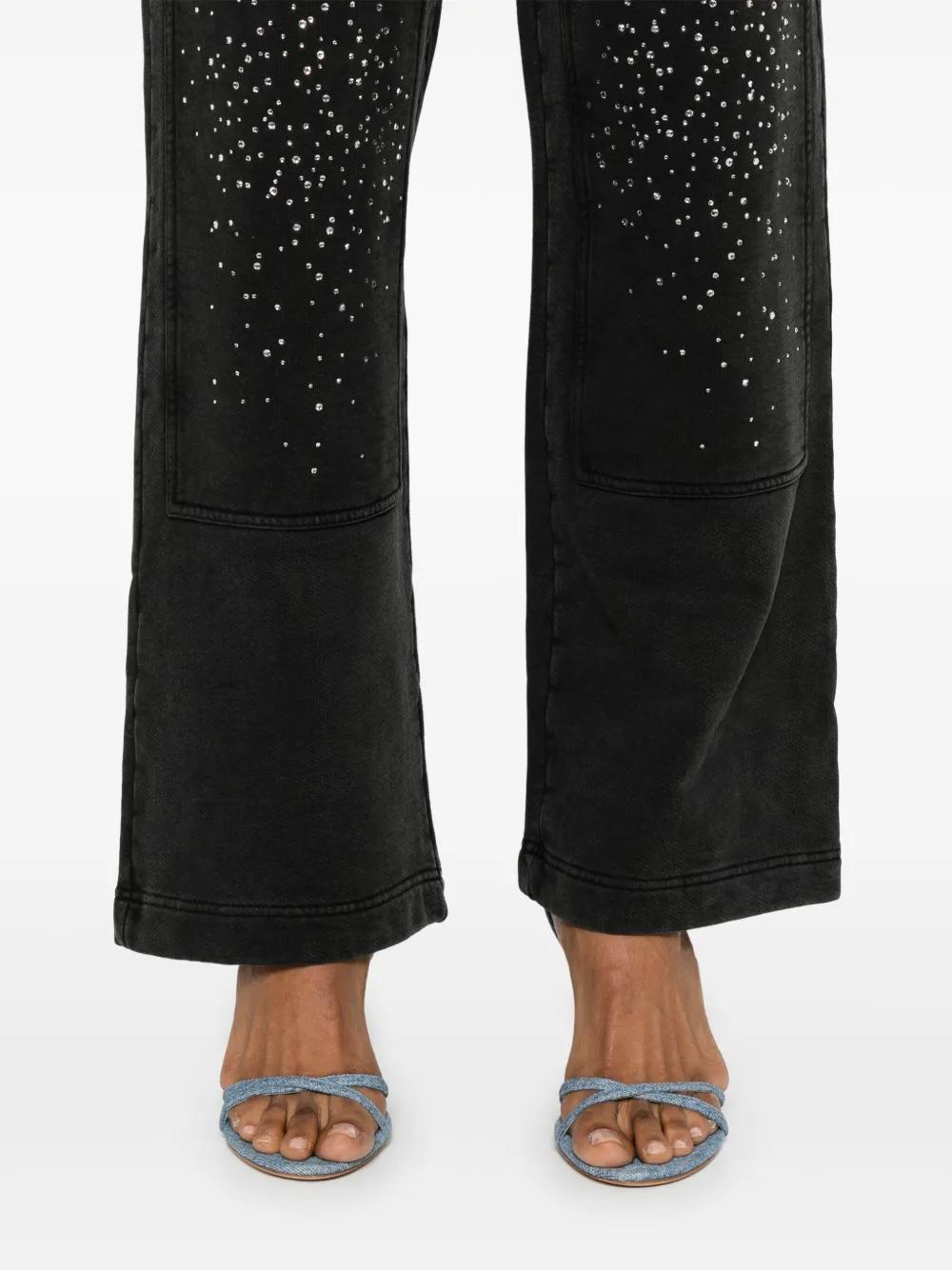 black elasticated drawstring waistband two side slit pockets rear patch pocket crystal embellishment