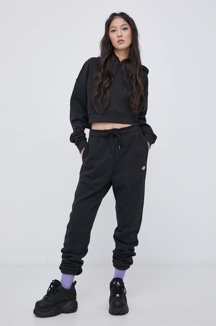 - Fason jogger. - Miękko wyściełany model. - Wsuwane kieszenie. - W pasie troczki. - Elastyczna listwa w pasie. - Nogawki wykończone ściągaczem. - Model z nadrukiem. - Szerokość w pasie: 38 cm. - Szerokość w biodrach: 54 cm. - Wysokość stanu: 37 cm. - Szerokość nogawki na dole: 14 cm. - Szerokość nogawki: 33 cm. - Długość: 103 cm. - Wymiary podane dla rozmiaru: L.