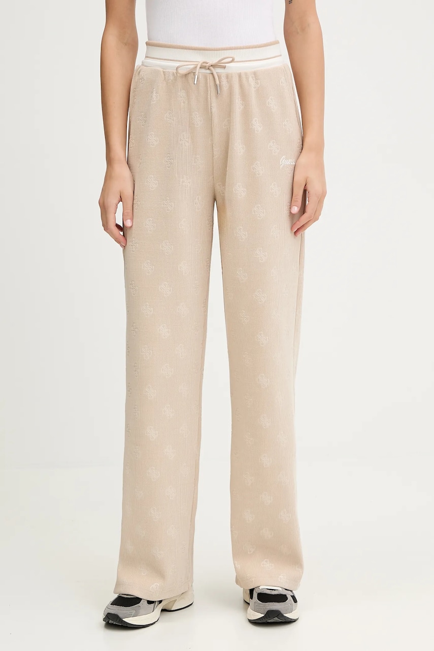 Guess spodnie dresowe PAULINA damskie kolor beżowy wzorzyste V5BB00 K1902