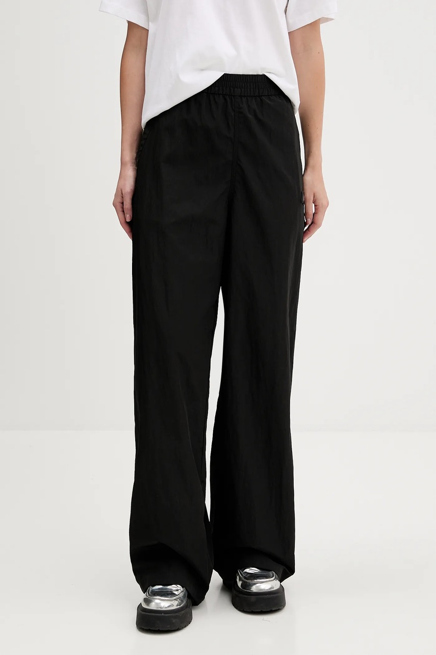 - Ten produkt został częściowo uszyty z poliestru pochodzącego z recyklingu. - Spodnie luźne w okolicy bioder i ud. - Podszewka wykonana z oddychającego, siateczkowego materiału. - Wysoki stan zapewnia komfort podczas aktywności i pozwala optycznie wyszczuplić sylwetkę. - Elastyczna listwa w pasie zapobiega zsuwaniu się podczas ruchu. - Prosta nogawka na całej długości. - Dwie wsuwane kieszenie boczne. - Szerokość w pasie: 38 cm. - Szerokość w biodrach: 55 cm. - Wysokość stanu: 33 cm. - Szerokość nogawki na dole: 29 cm. - Szerokość nogawki: 32 cm. - Długość zewnętrzna nogawki: 111 cm. - Wymiary podane dla rozmiaru: 36.