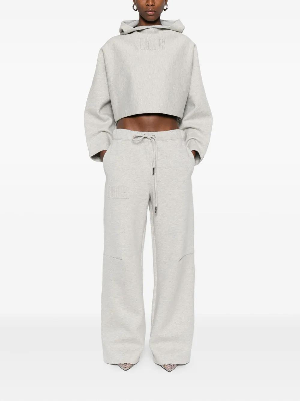 grey drawstring fastening embroidered detail cotton