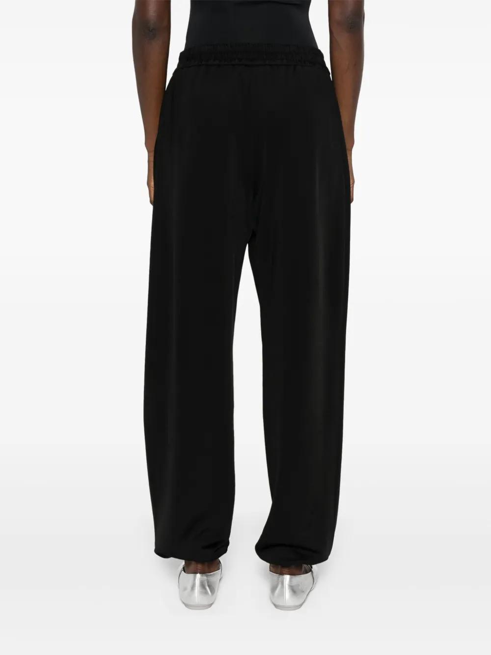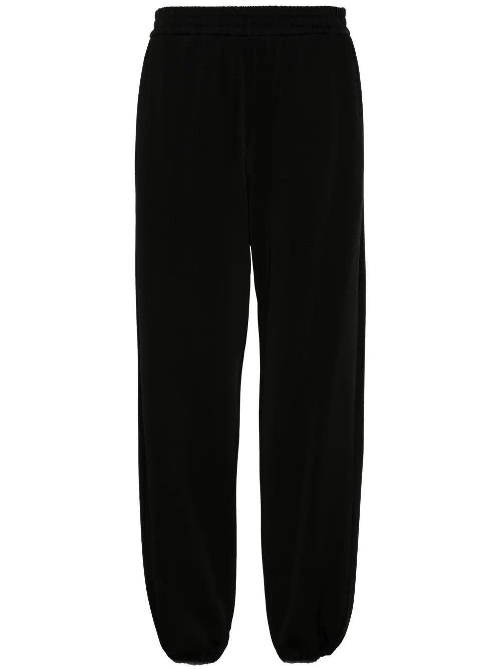 black technical jersey high waist elasticated waistband two side slit pockets tapered leg elasticated ankles