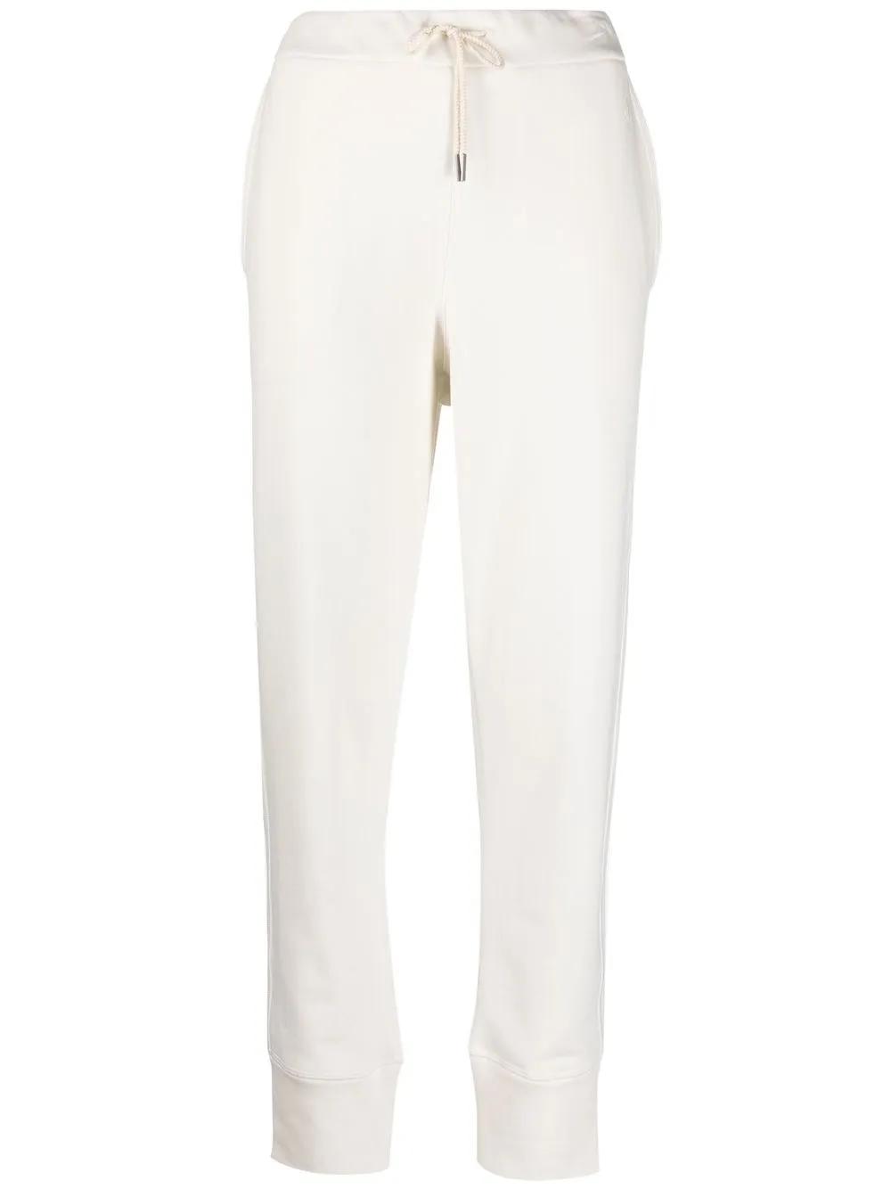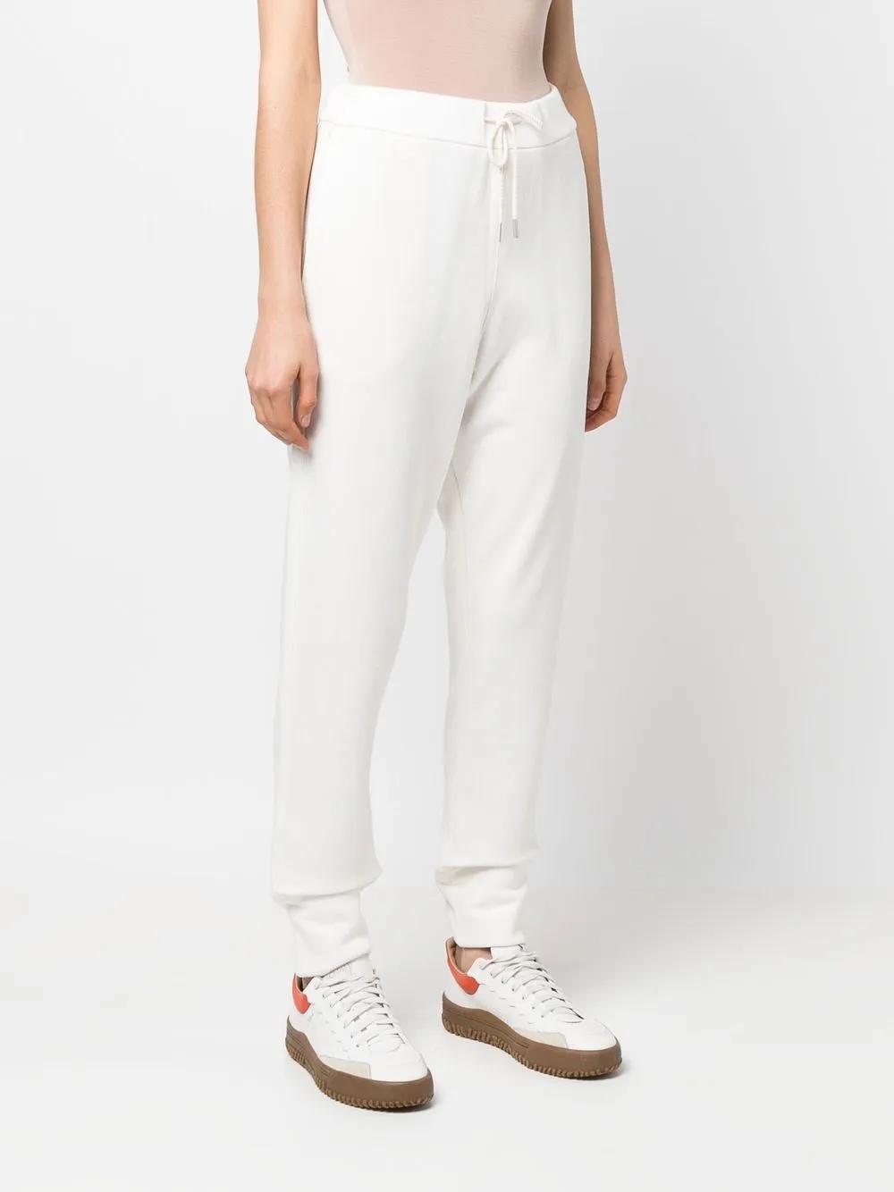 white cotton jersey knit elasticated drawstring waistband two side slash pockets elasticated cuffs