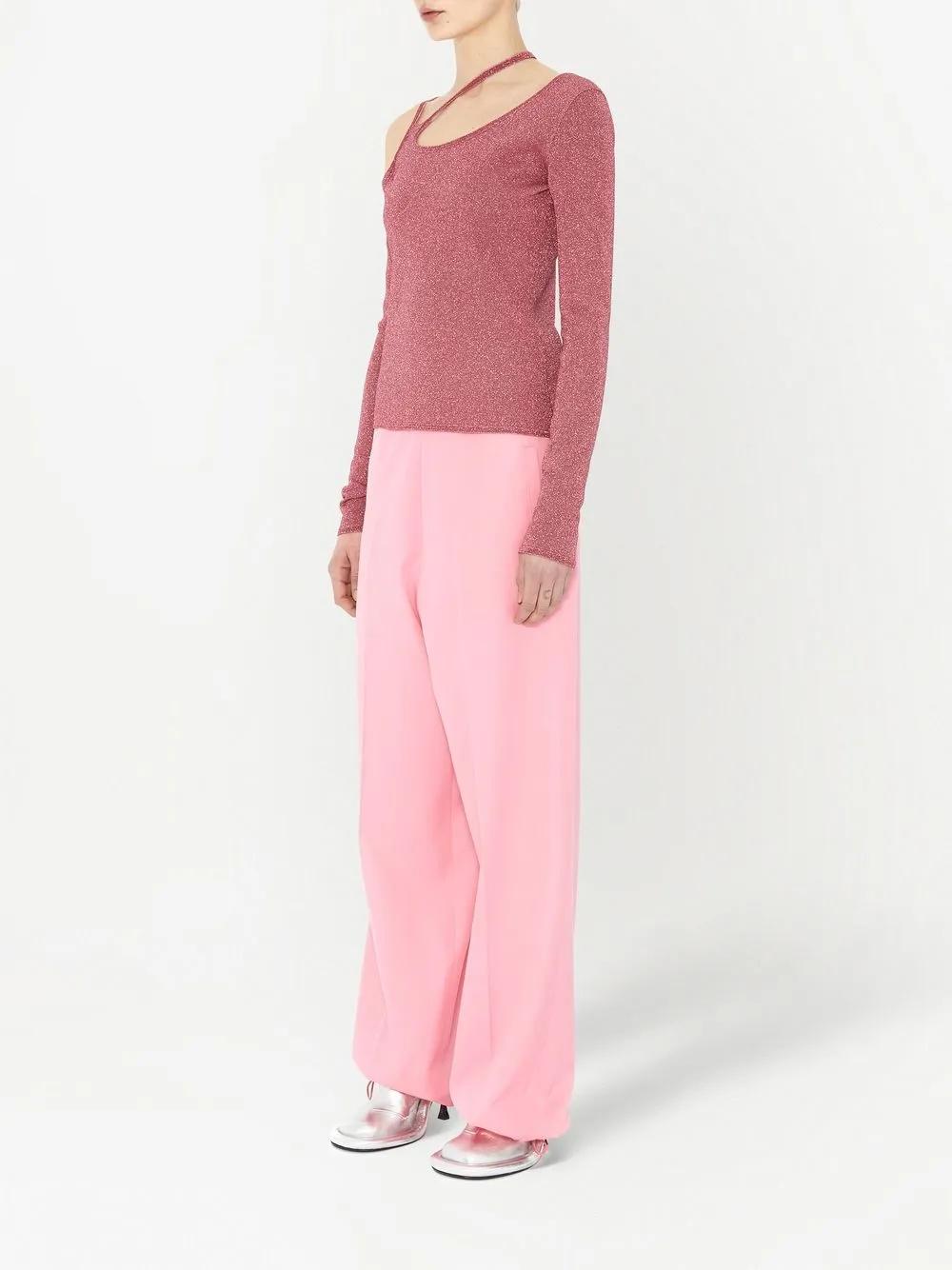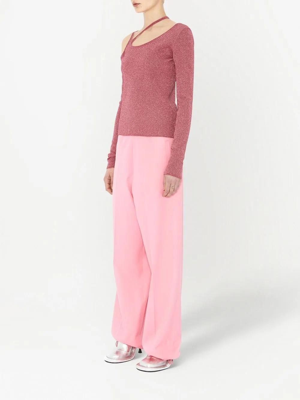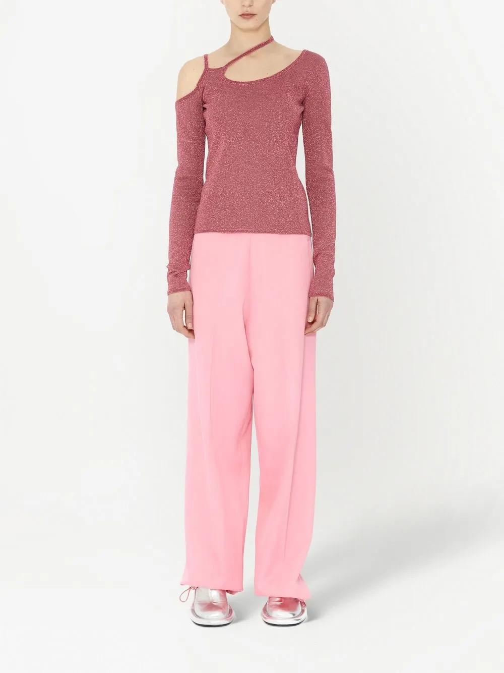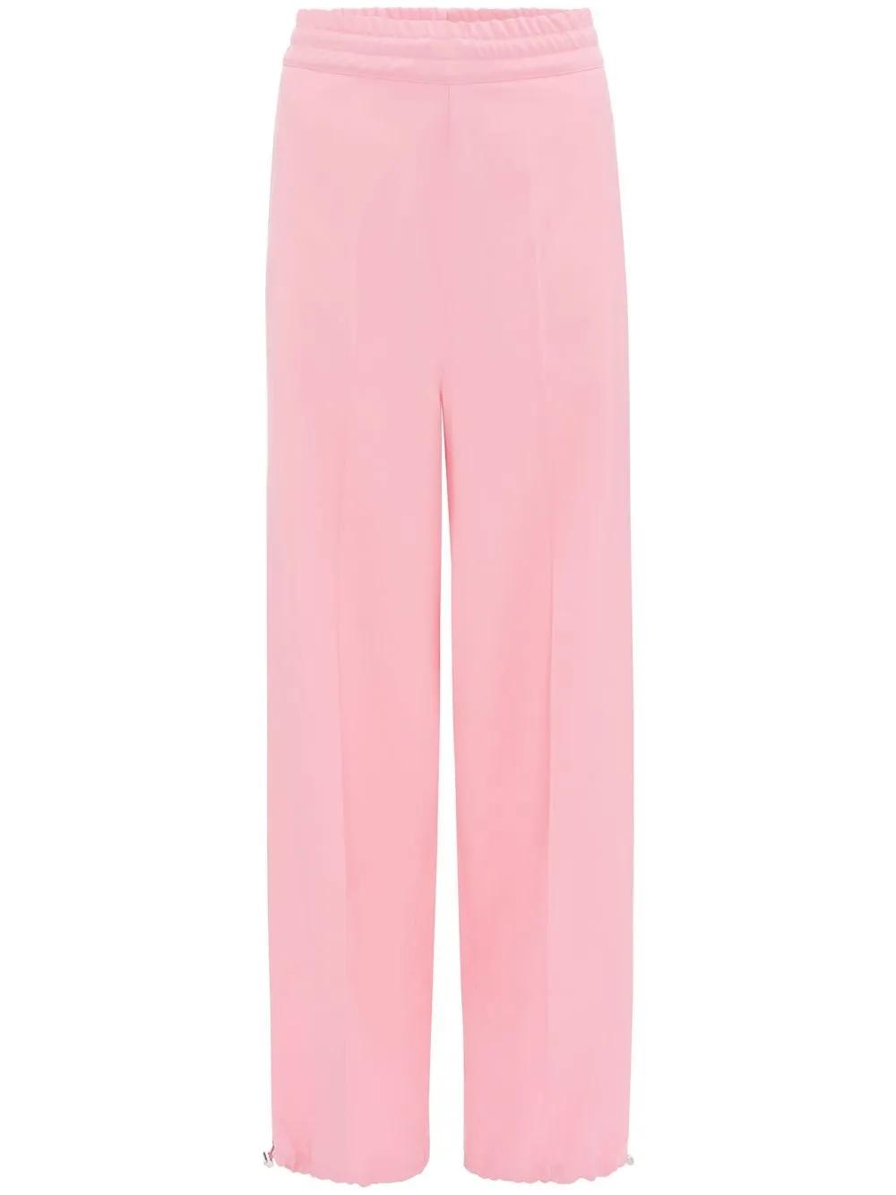 light pink elasticated waistband elasticated ankles straight leg pressed crease
