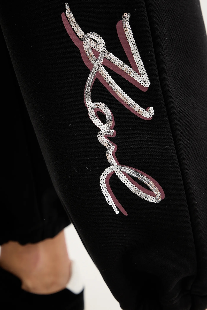 - Produkt zawiera włókna bawełny organicznej i poliestru z recyklingu. - Podwyższony stan z elastyczną listwą w pasie. - Fason ze zwężanymi nogawkami, które nie blokują ruchów. - Model z ozdobną aplikacją. - Nogawki wykończone wygodnymi, elastycznymi ściągaczami. - Szerokość w pasie: 35 cm. - Szerokość w biodrach: 51 cm. - Wysokość stanu: 28 cm. - Szerokość nogawki na dole: 13 cm. - Szerokość nogawki: 29 cm. - Długość wewnętrzna nogawki: 70 cm. - Wymiary podane dla rozmiaru: S.