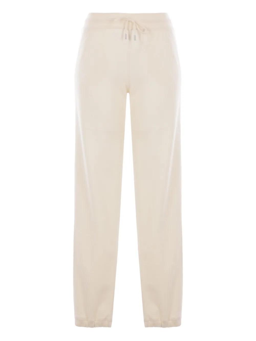 off-white cashmere drawstring waistband cuffed hems rear patch pocket flat front