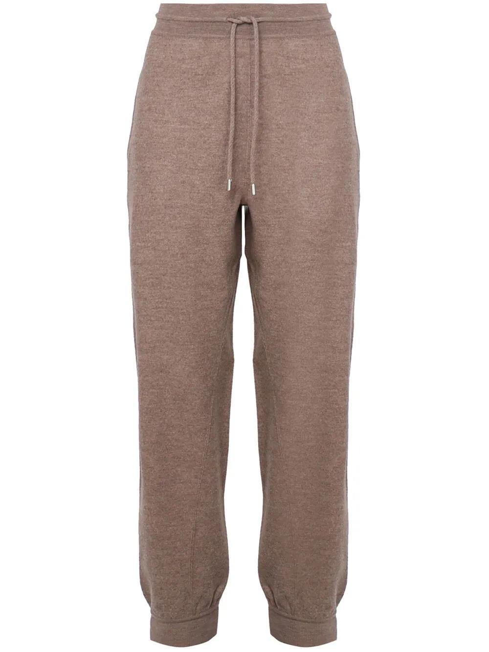 brown virgin wool elasticated drawstring waistband two side slit pockets straight leg