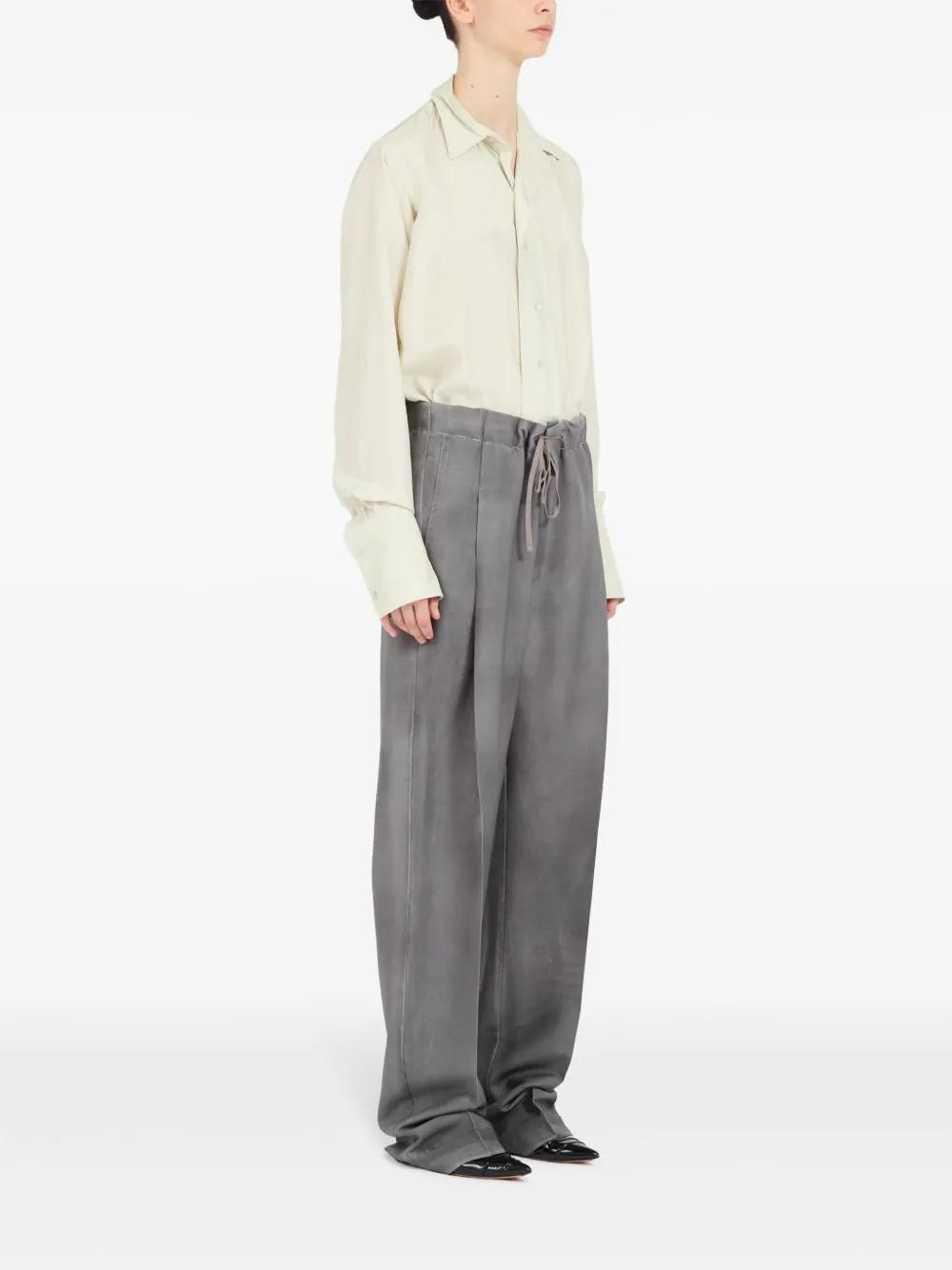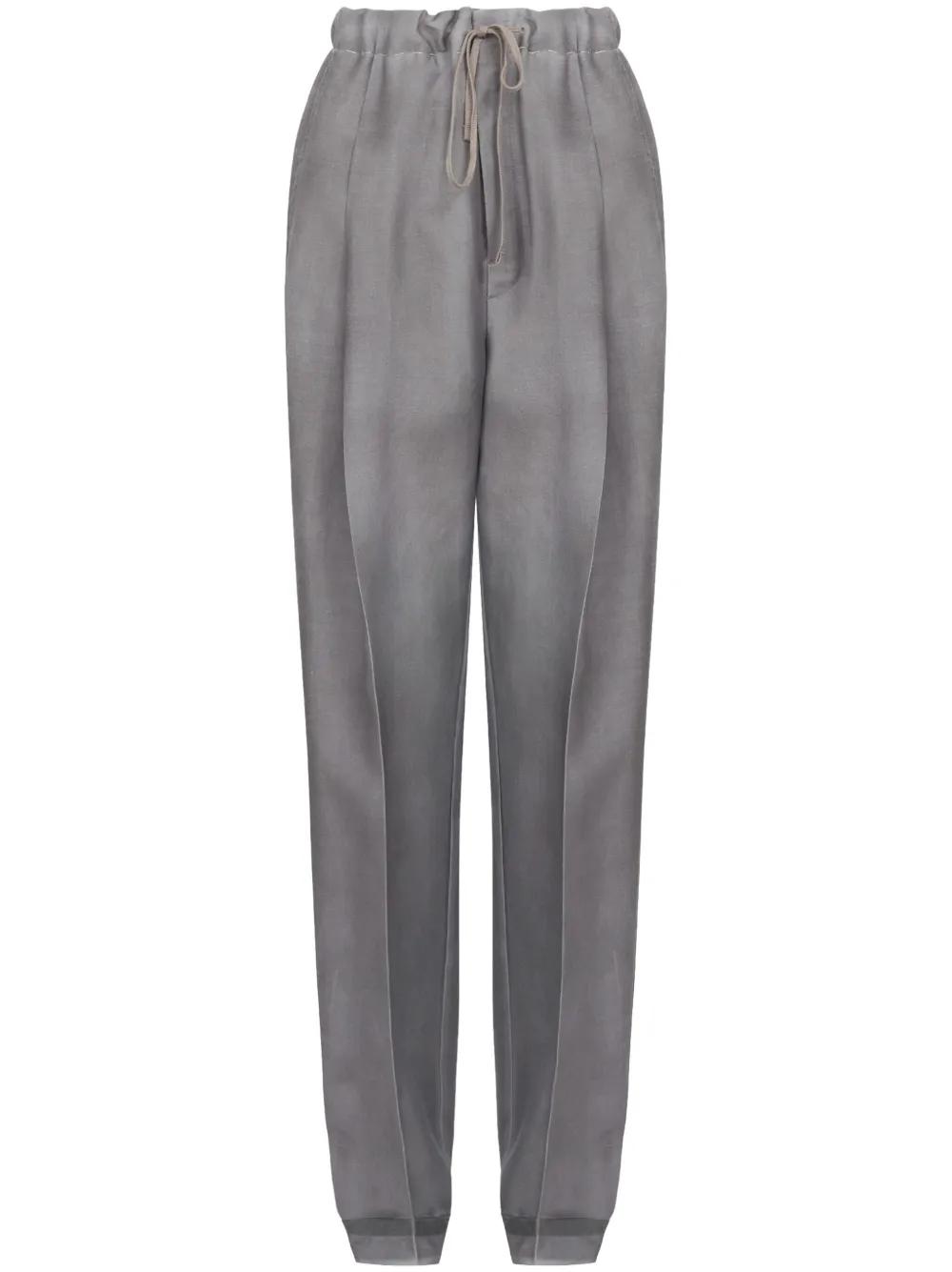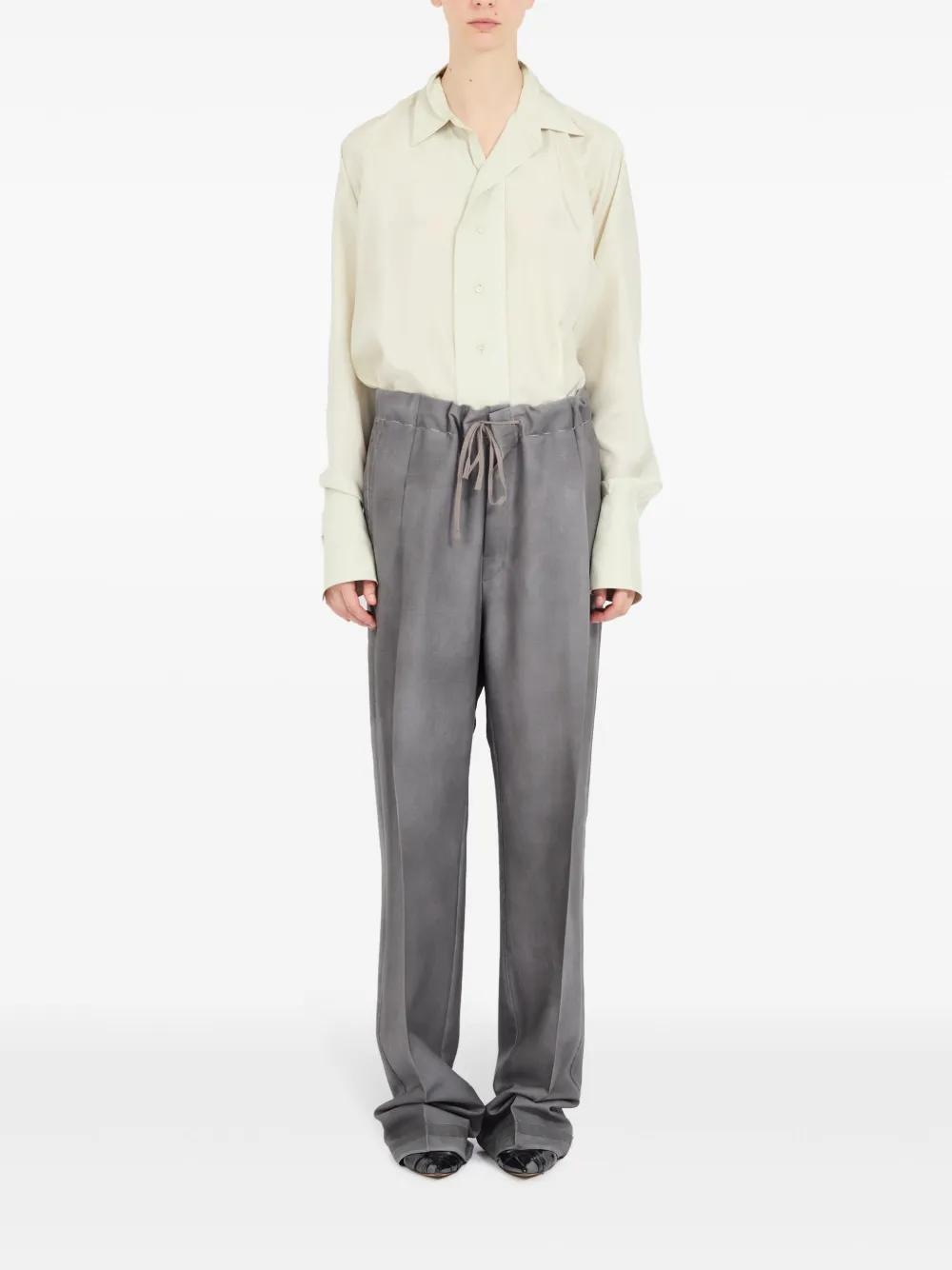 grey mohair blend signature four-stitch logo embroidered logo drawstring fastening waist slip pockets to the sides two rear welt pockets long length wide leg