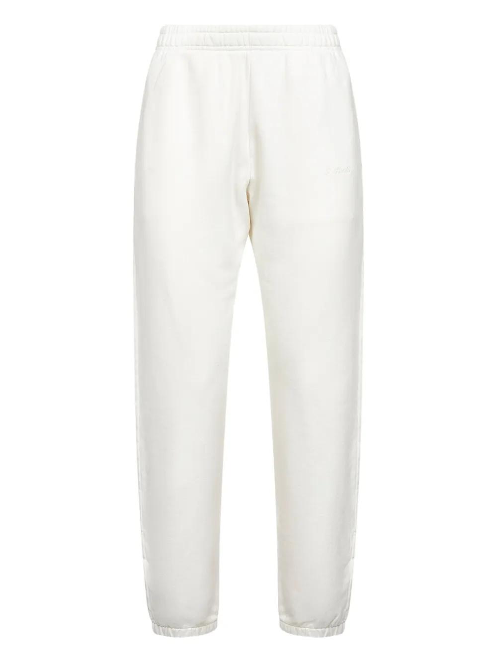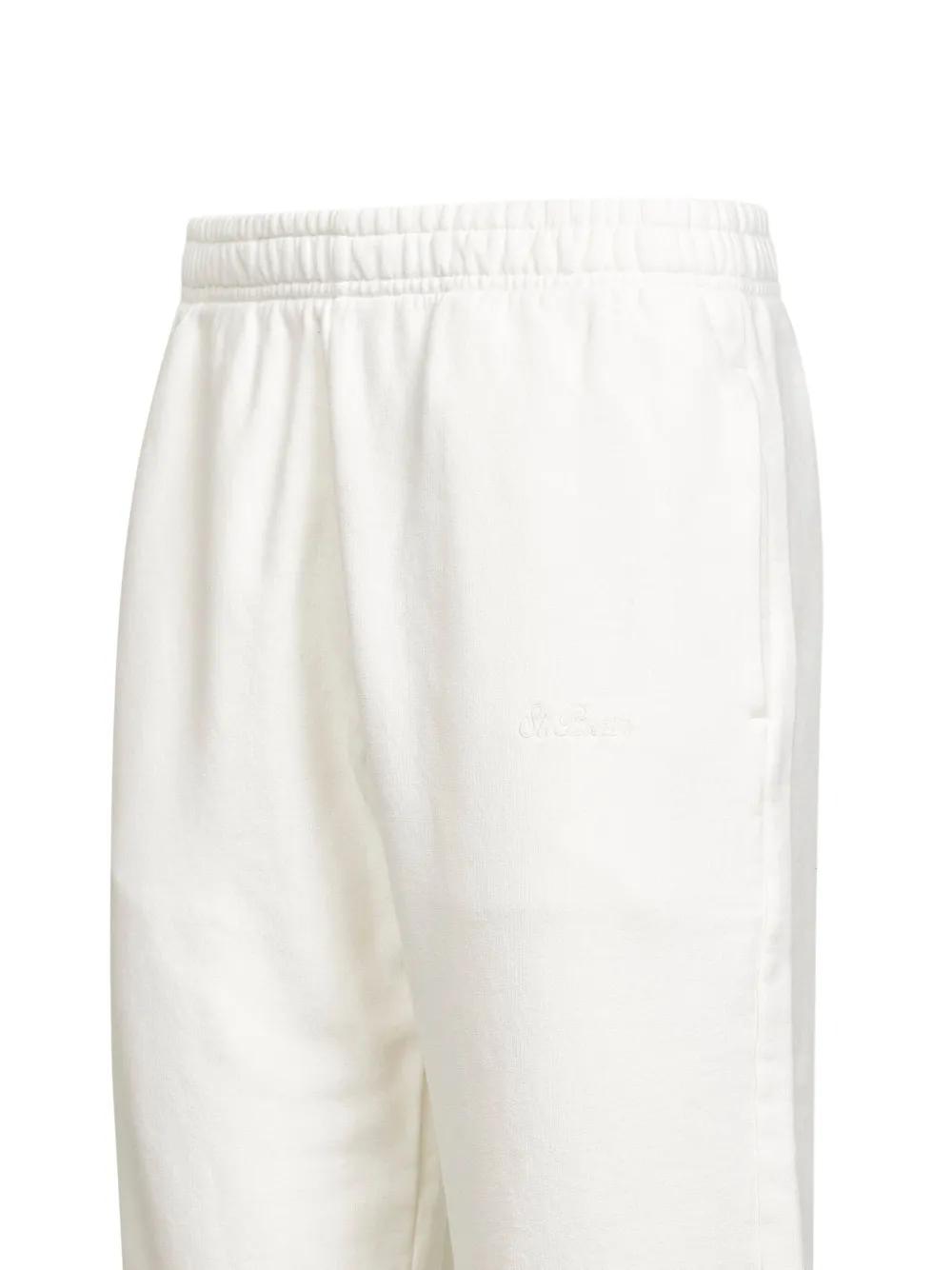 white elasticated waistband adjustable drawstring side pockets elasticated cuffs