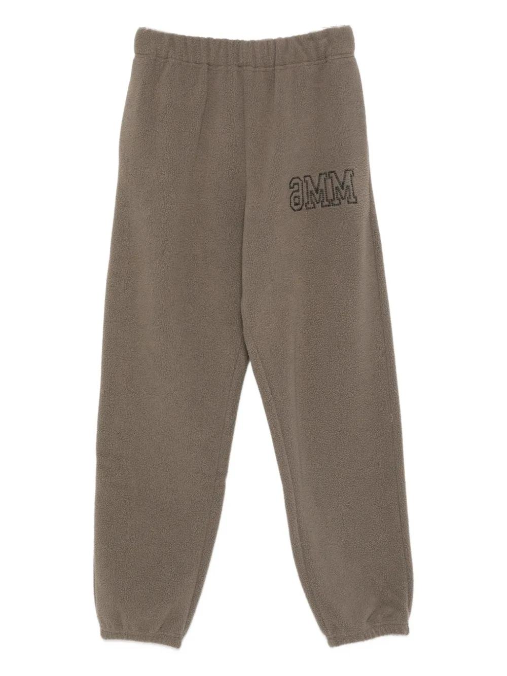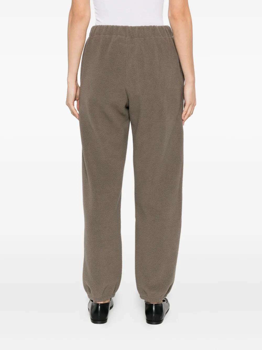 brown fleece texture elasticated waistband cuffed ankles embroidered logo straight leg