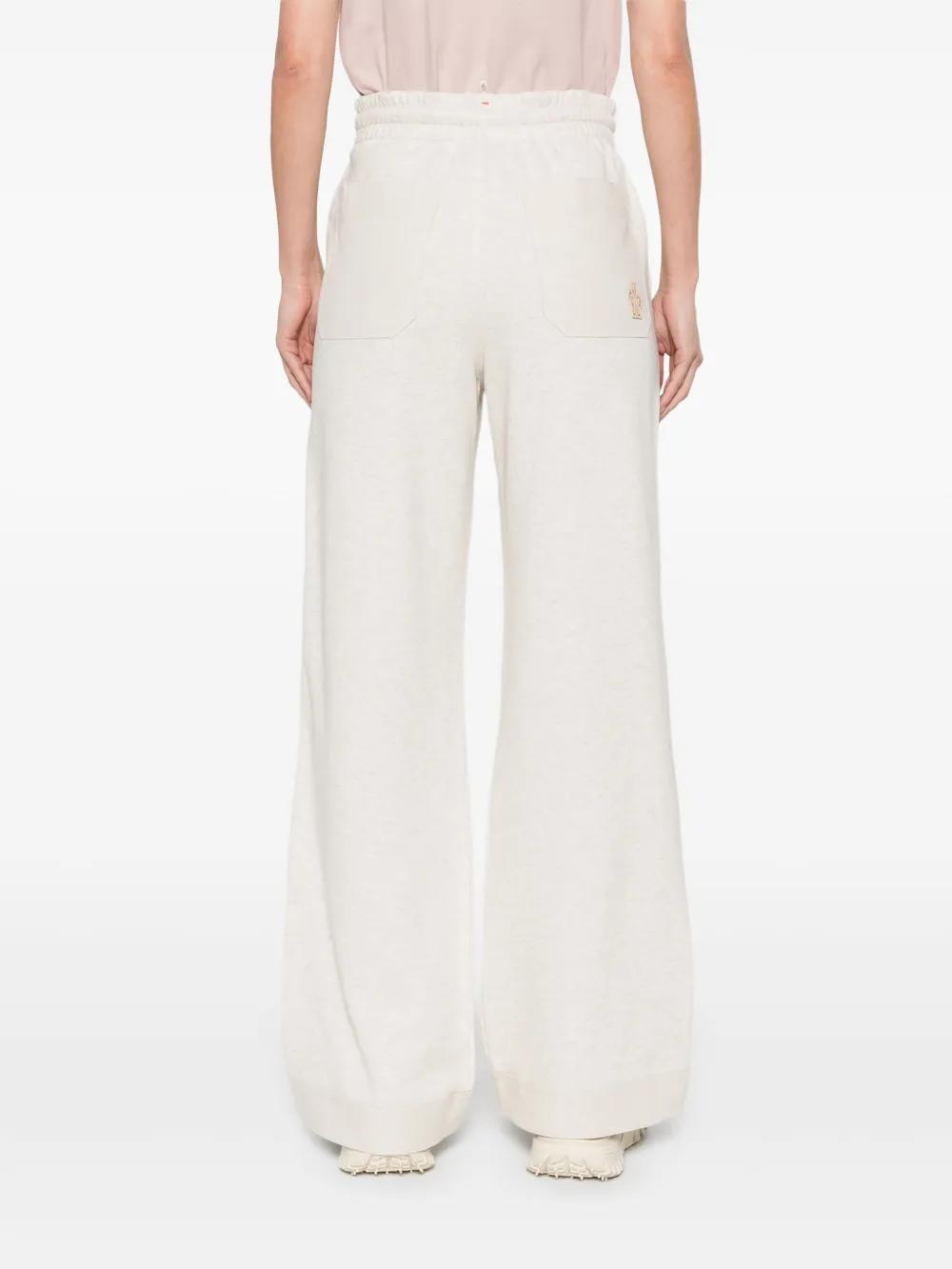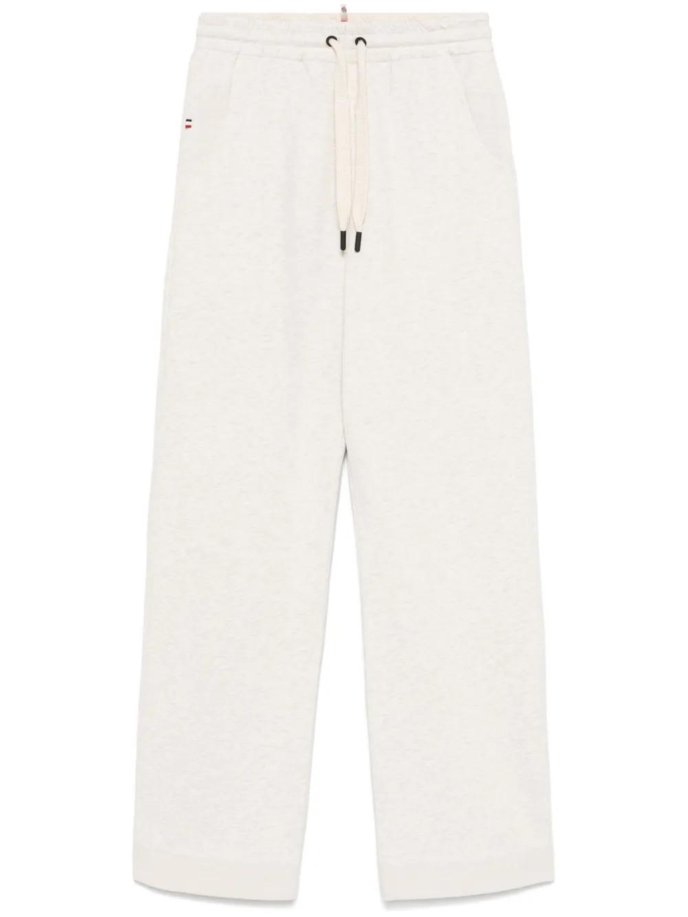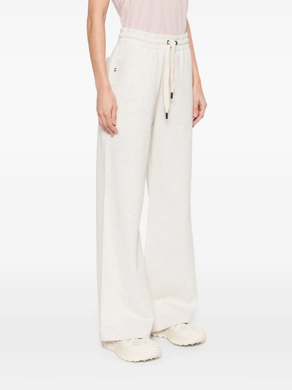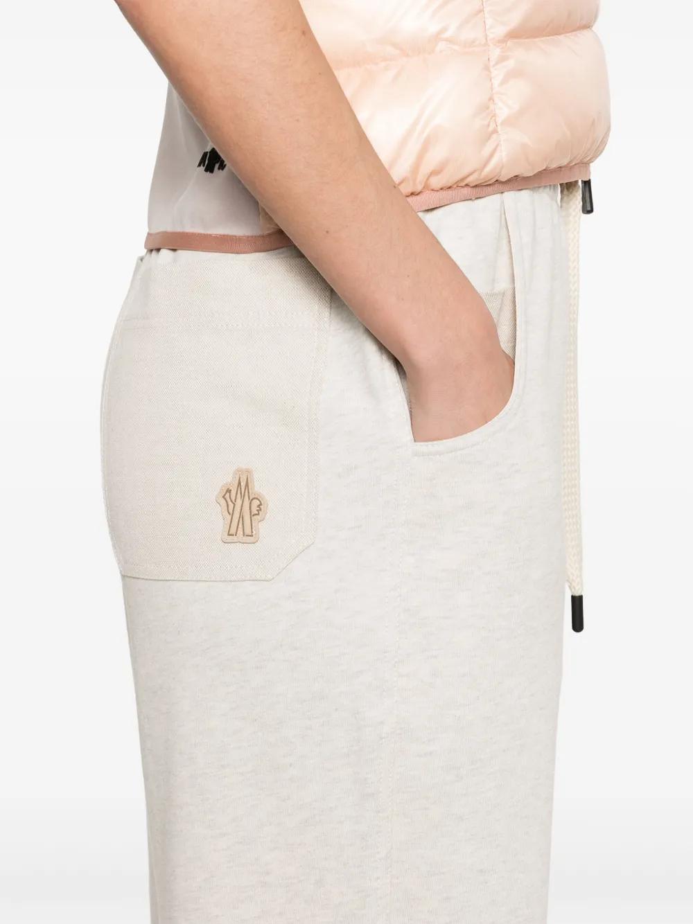 light beige elasticated drawstring waistband classic five pockets logo patch to the rear