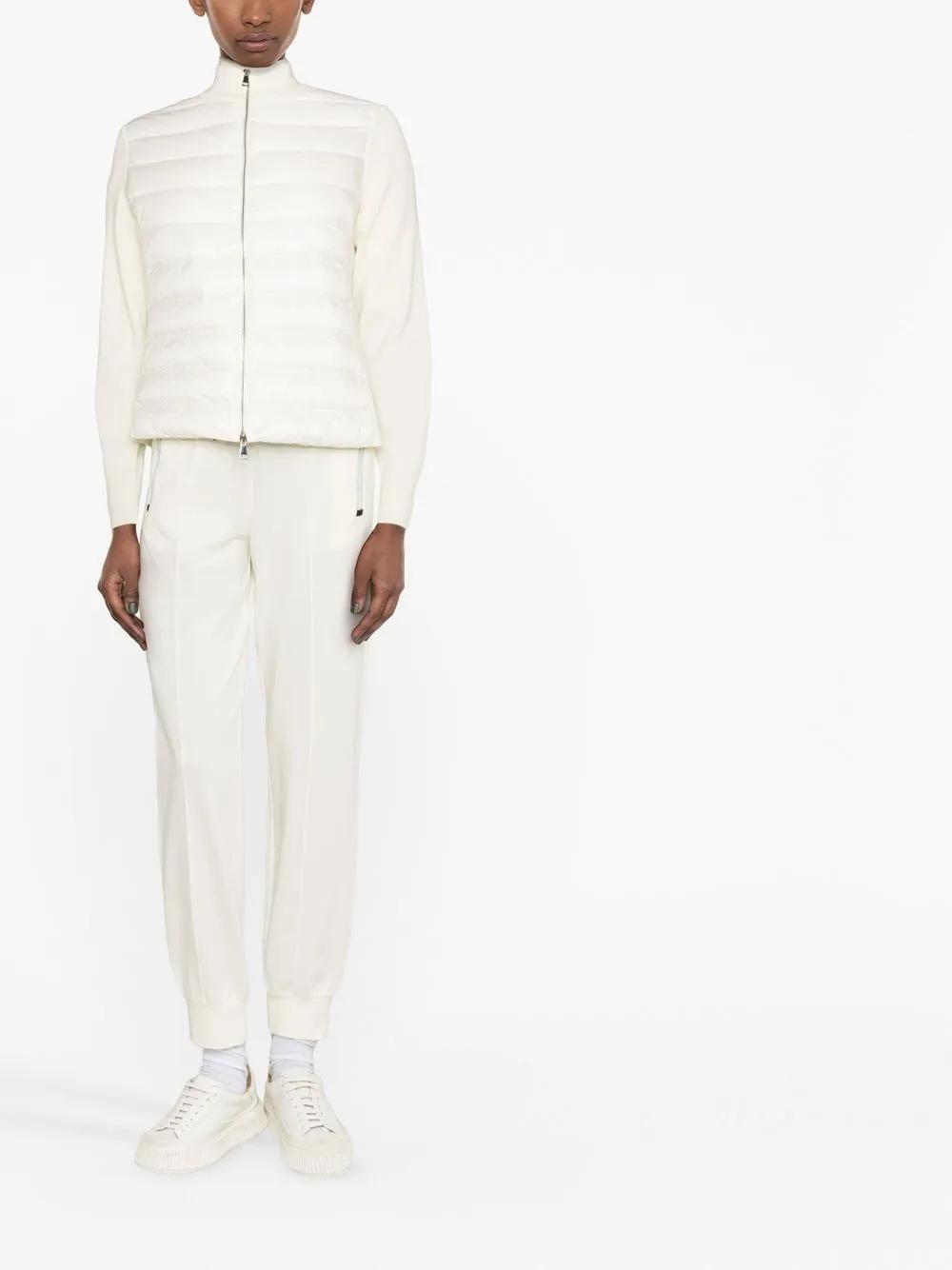 cream white cotton elasticated drawstring waistband front zip fastening pockets elasticated cuffs