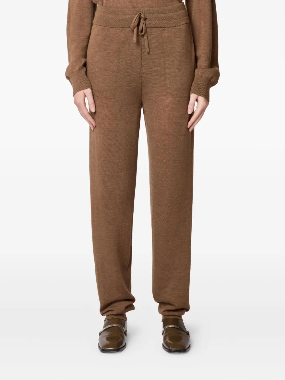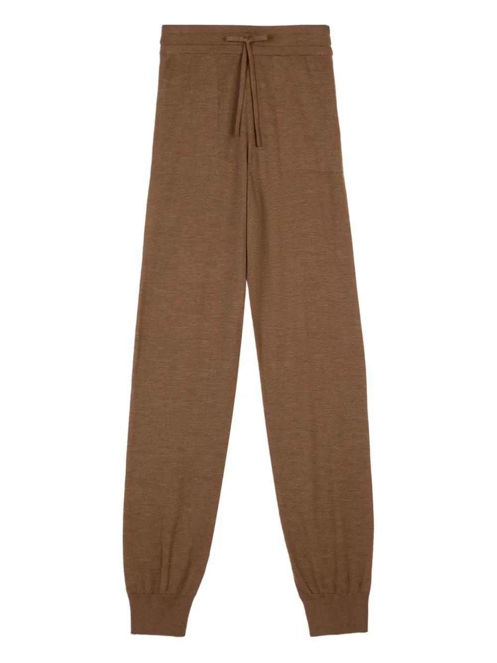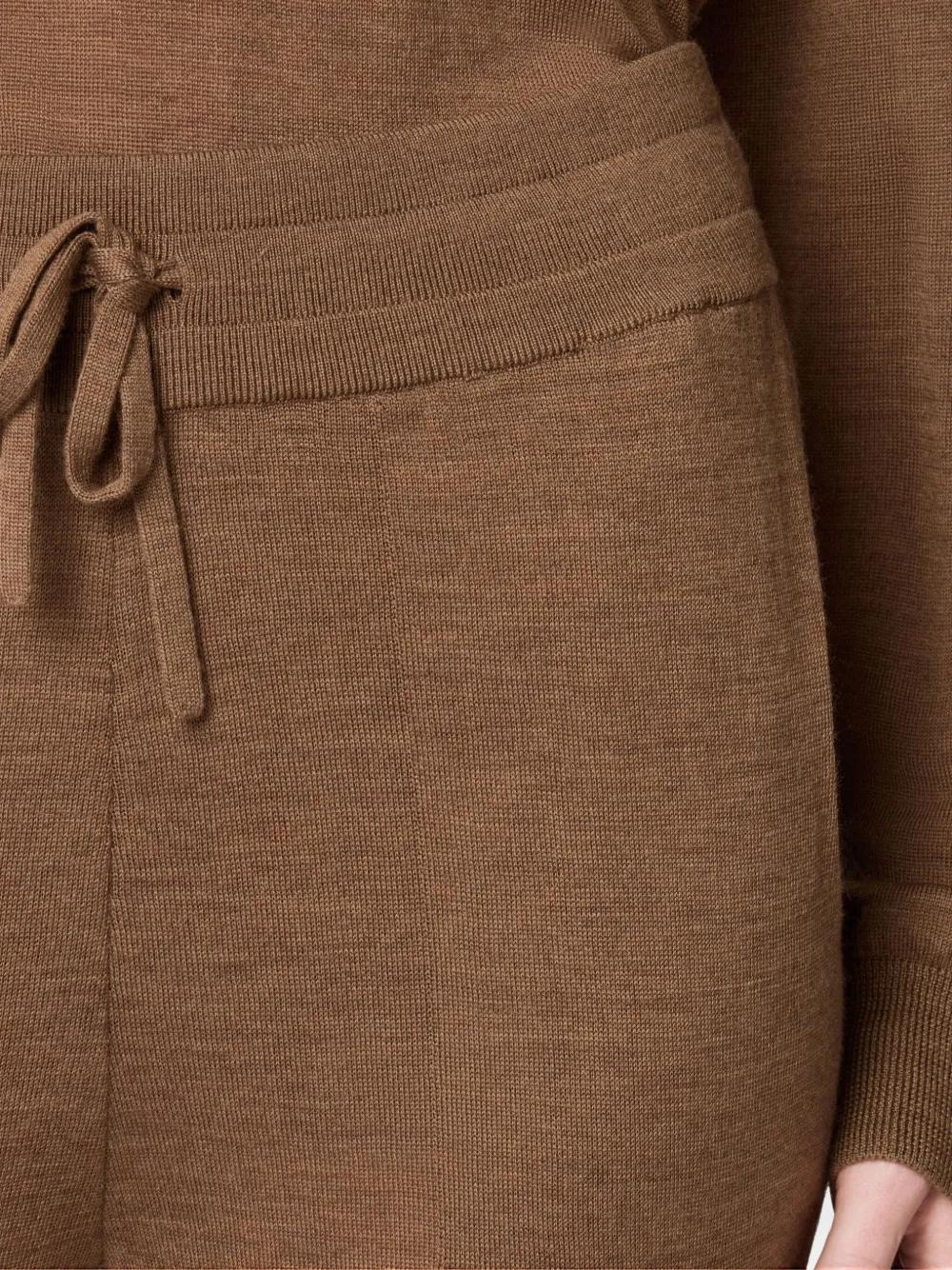 brown knitted drawstring fastening elasticated waistband ribbed ankles