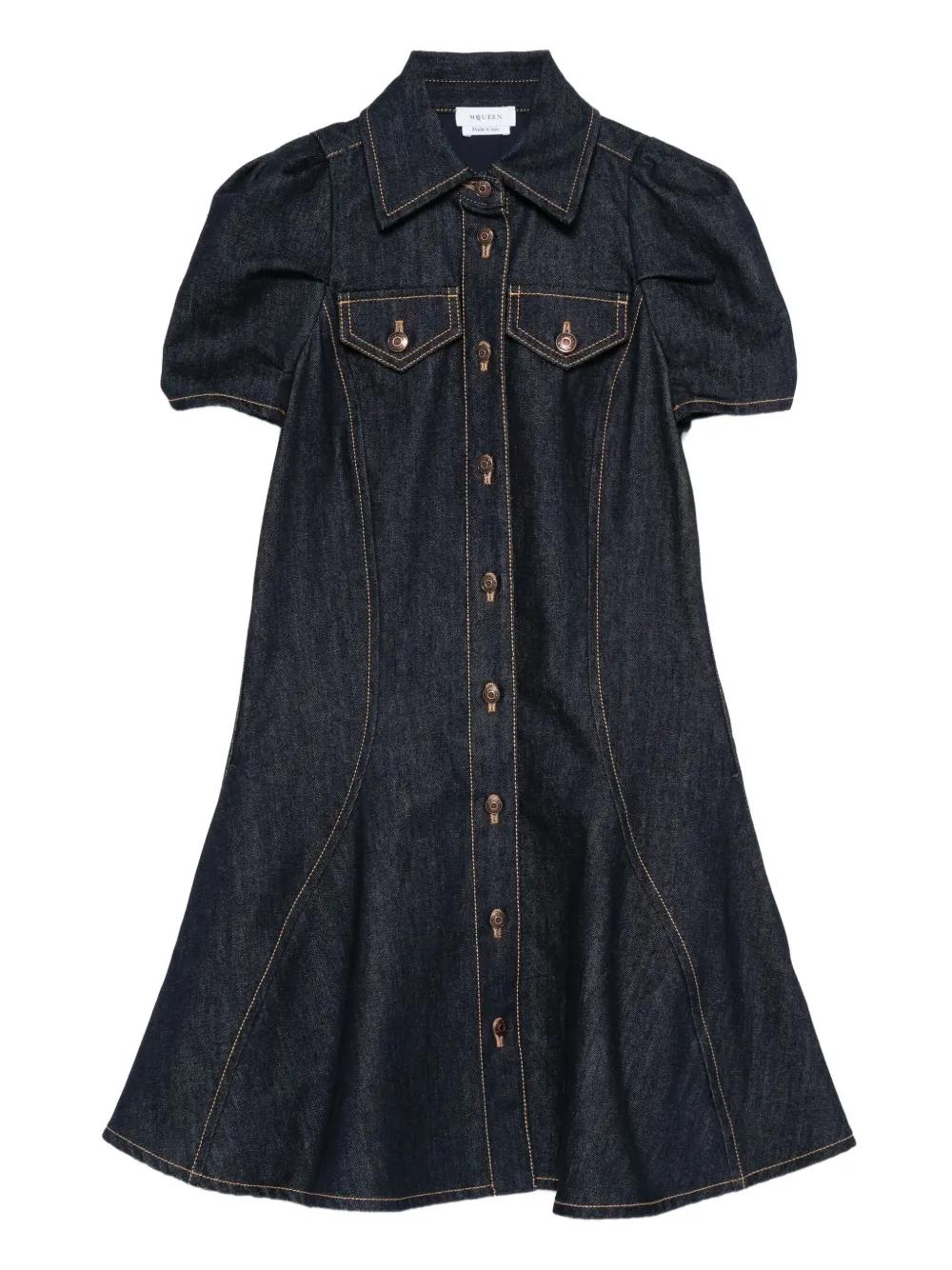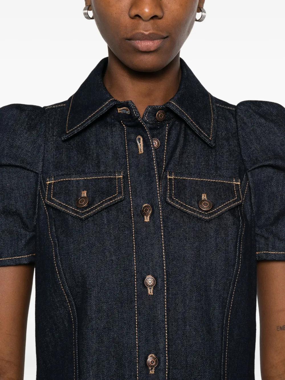 Alexander McQueen puff-sleeve button-front denim dress - Blue