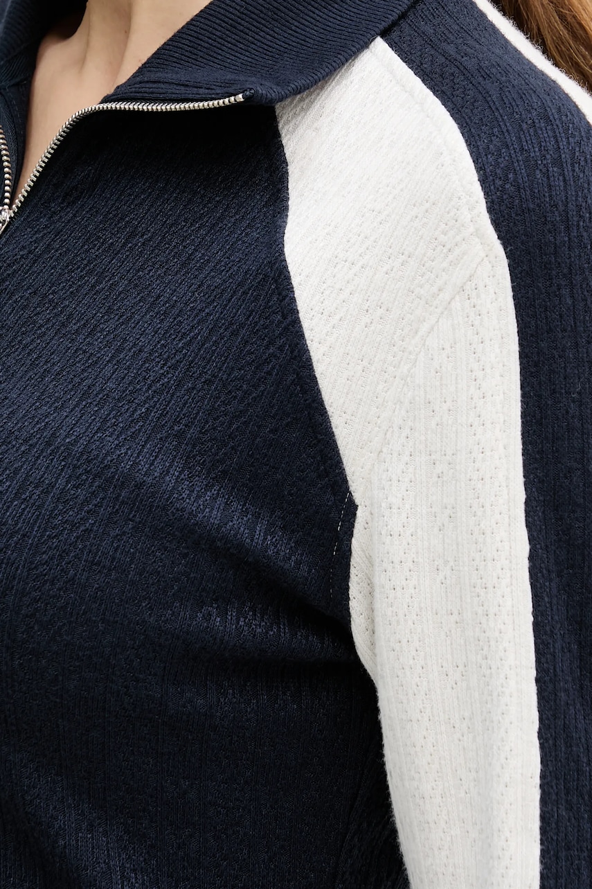 - Model o długości mini. - Prosty fason. - Zapięcie na krótki suwak i podwyższony kołnierz. - Długie rękawy. - Rękawy wykończone ściągaczem. - Długość: 86 cm. - Długość rękawa: 61 cm. - Szerokość pod pachami: 41 cm. - Wymiary podane dla rozmiaru: S.