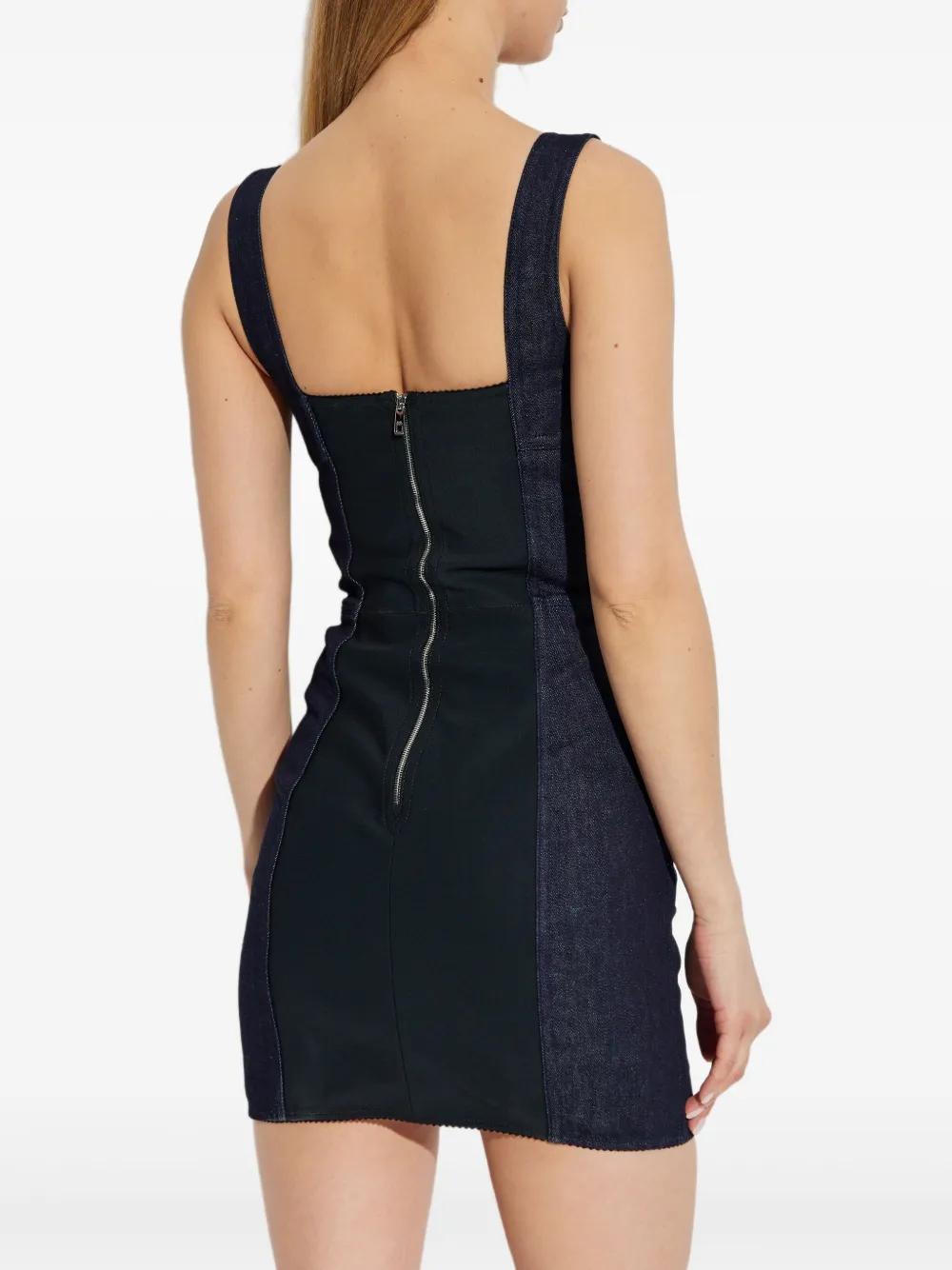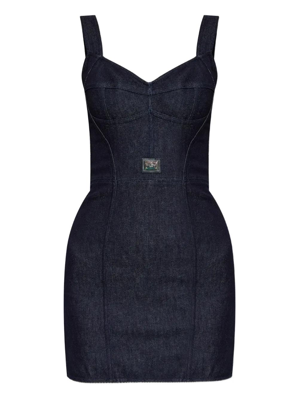 navy blue rear zip fastening logo patch to the front sweetheart neck sleeveless