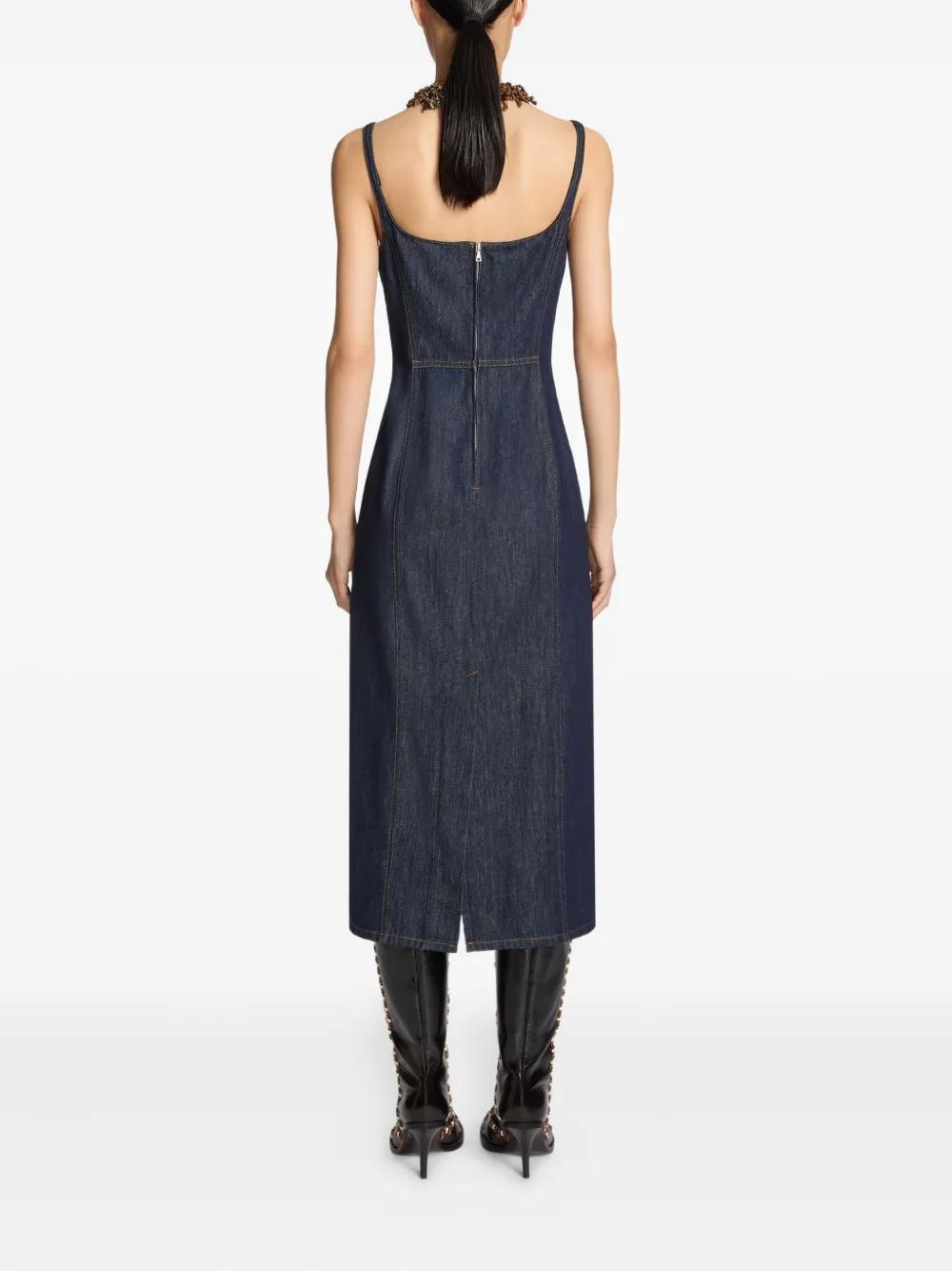 DRIES VAN NOTEN square-neck denim midi dress - Blue